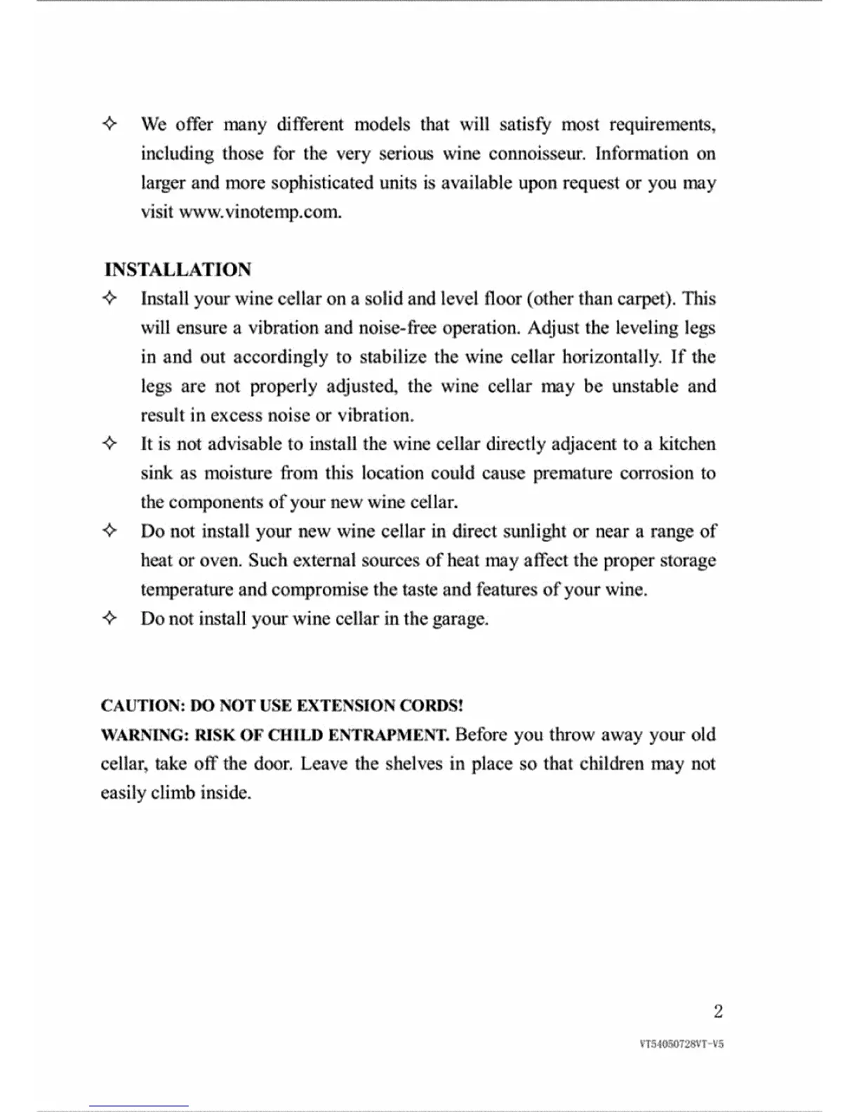 Vinotemp VT60 - Installation Guide