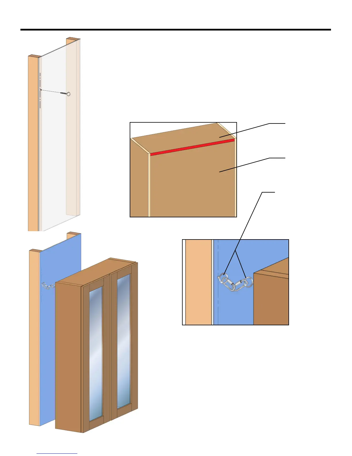 Secure an eyebolt to the uppermost exterior board on the rear of the cabinet (Labeled