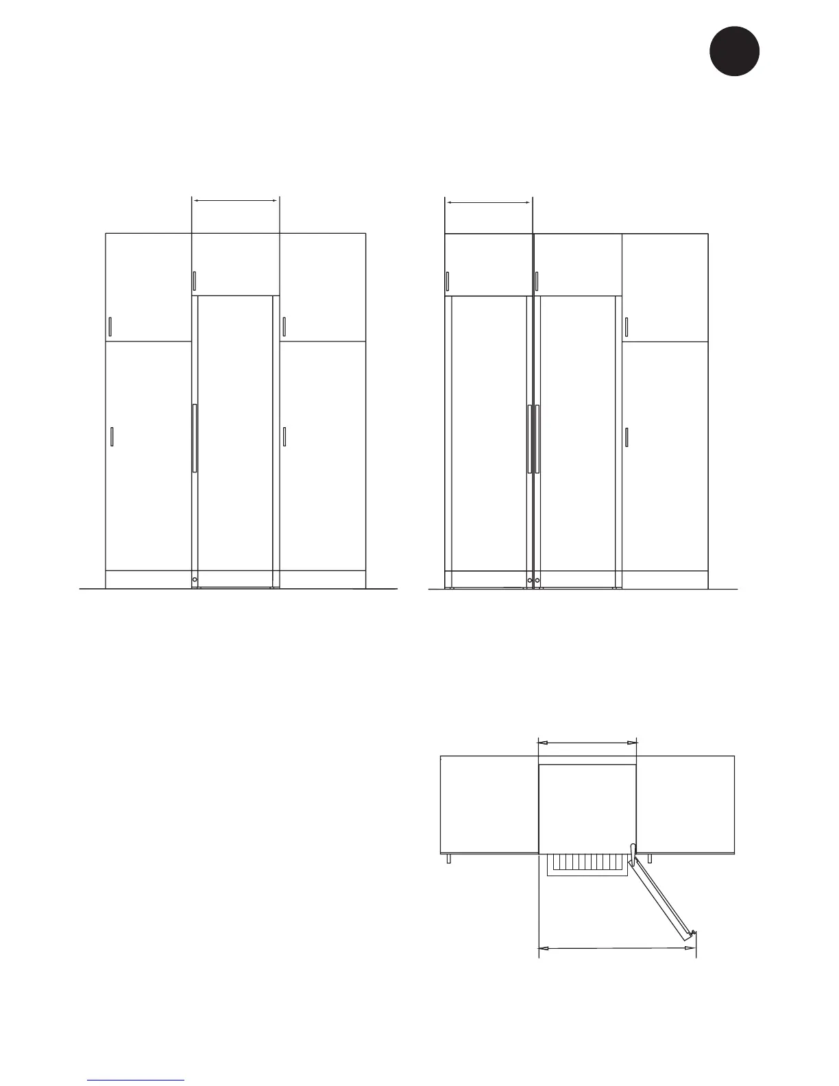 Når skabet placeres ved siden af en væg,