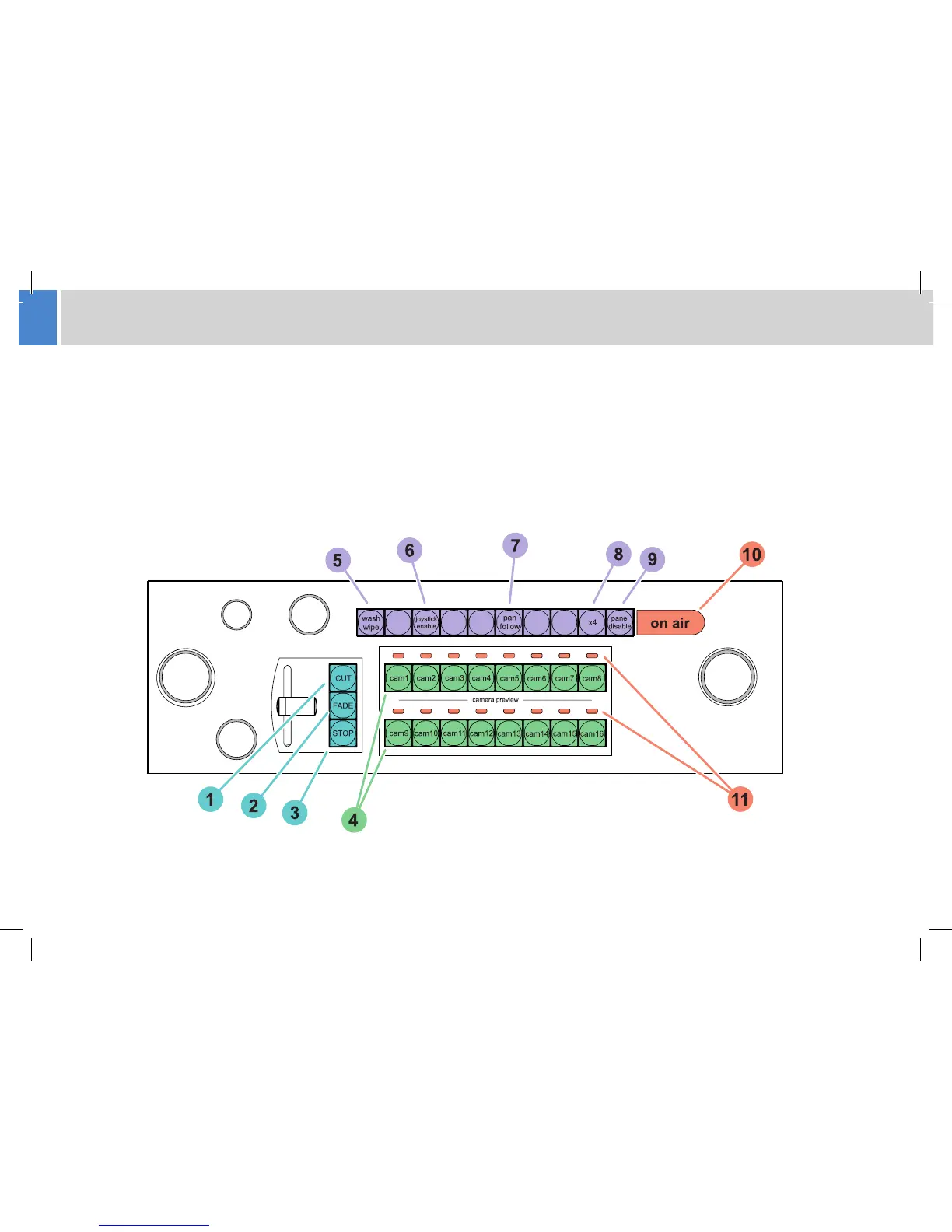 The buttons provide quick access to functions when the operator is using the panel to control cameras.