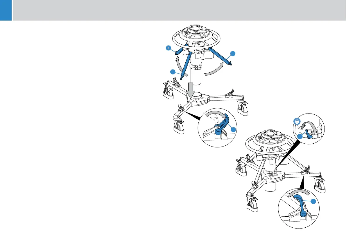 2. Hold the column upright. Raise the struts (9 and 12) to about 30°