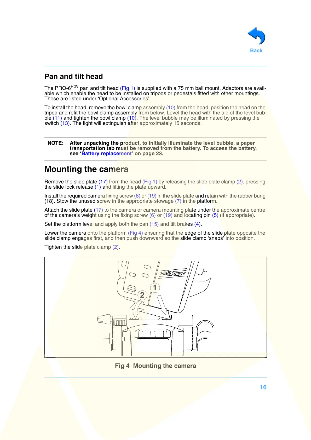 pan and tilt head (Fig 1) is supplied with a 75 mm ball mount. Adaptors are avail-