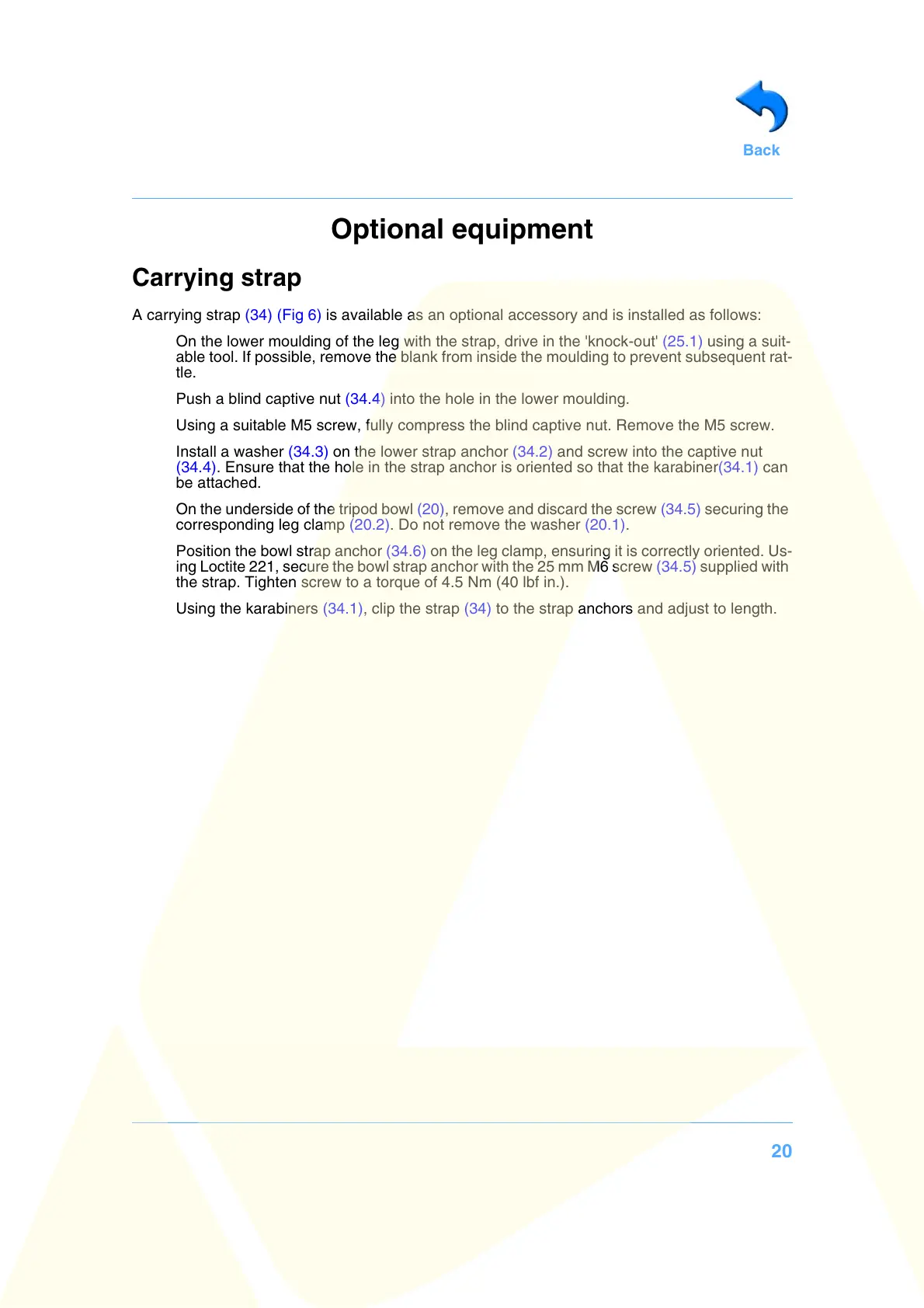 corresponding leg clamp (20.2). Do not remove the washer (20.1).
