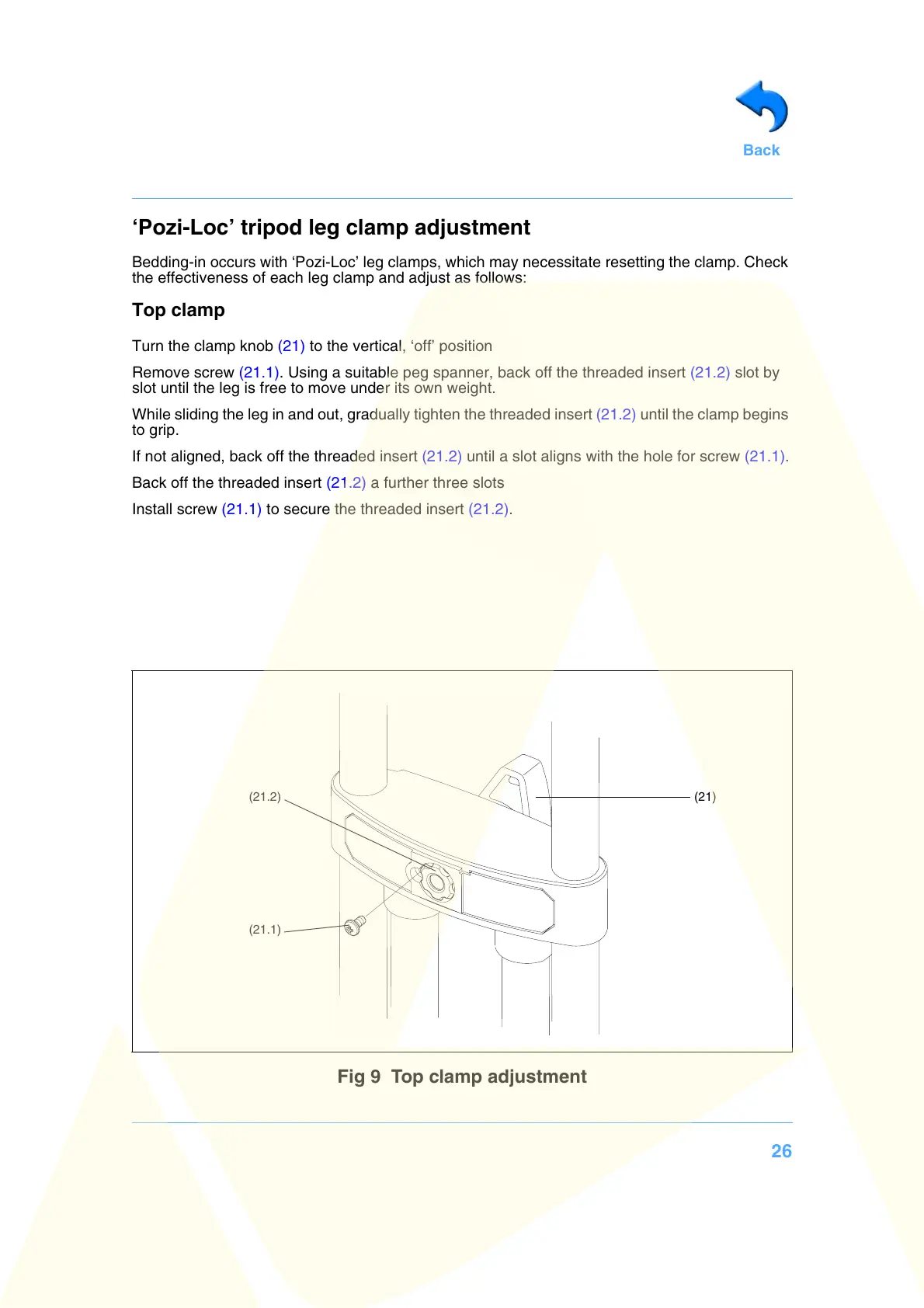 ‘Pozi-Loc’ tripod leg clamp adjustment