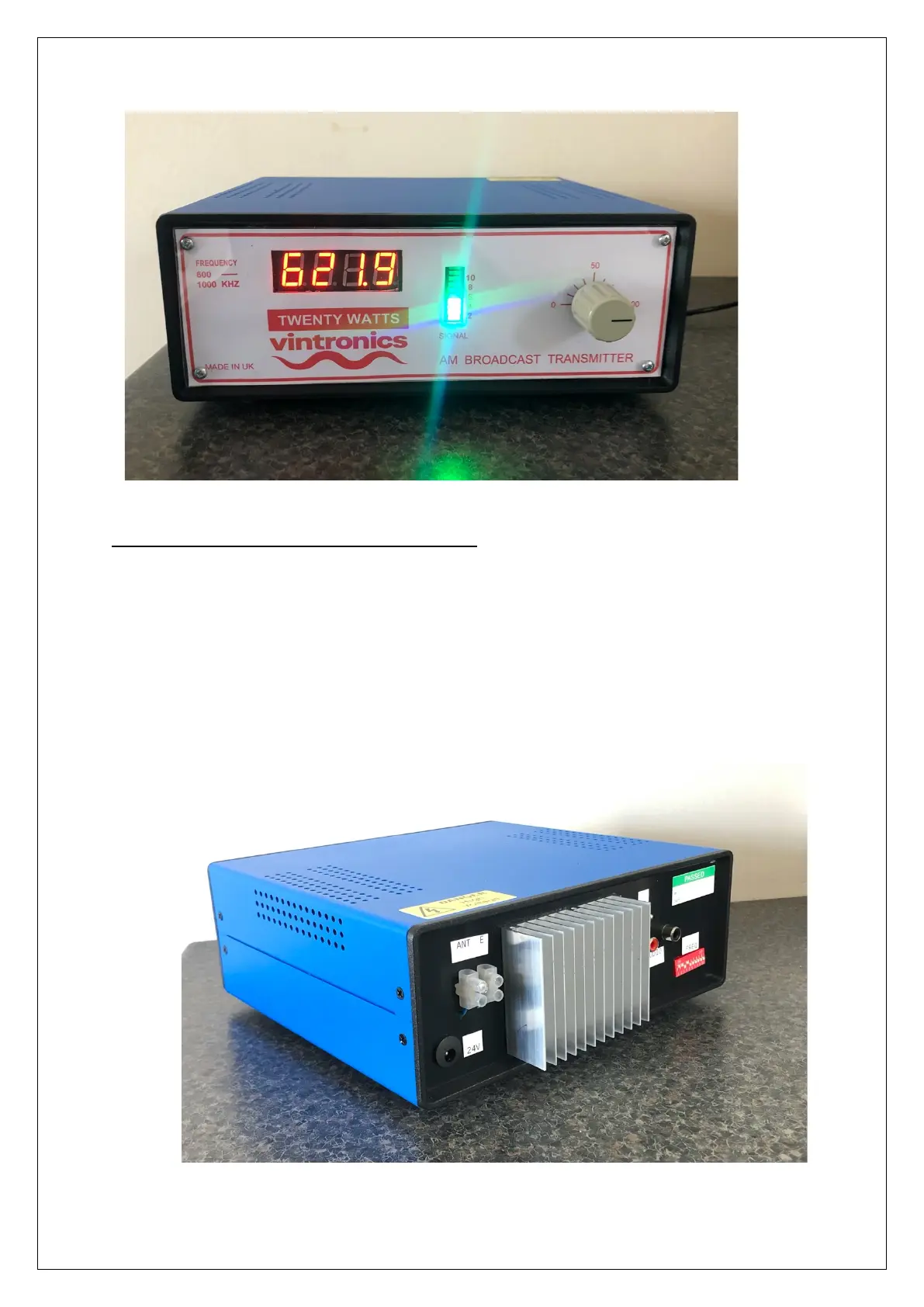 The transmitter comes already set up for use, together with a mains power supply and wire