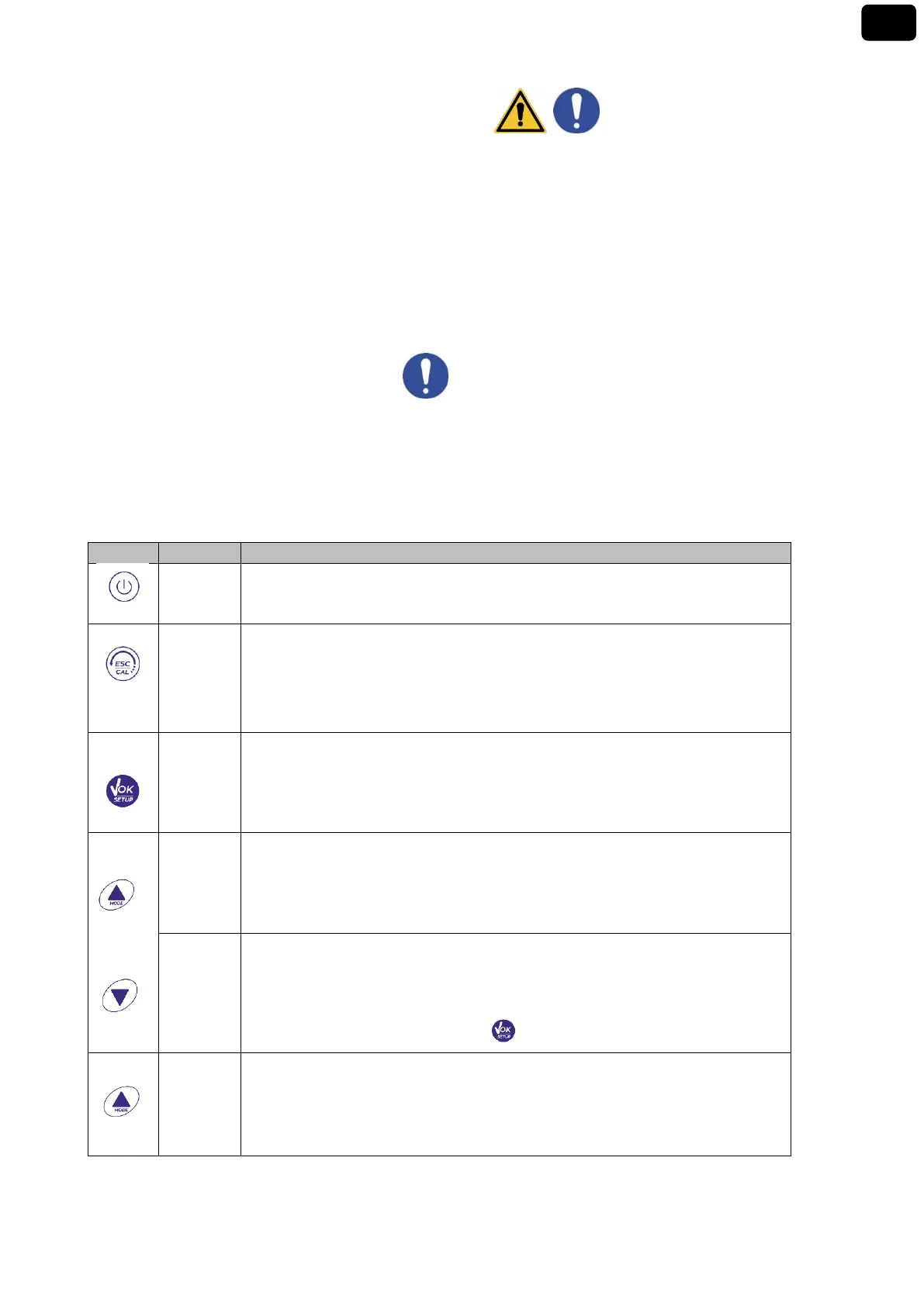 In measurement mode, press to start the calibration