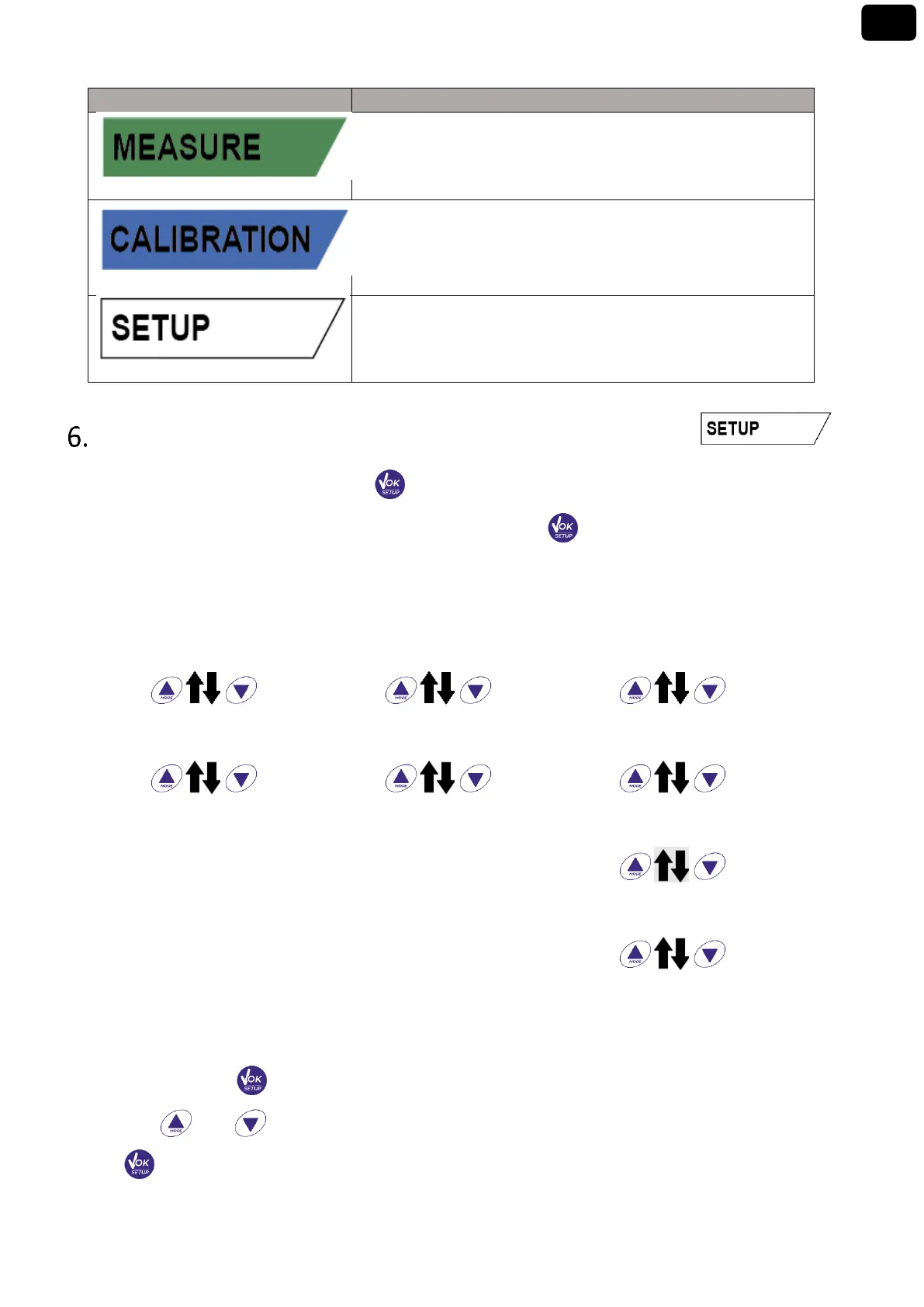 In measurement mode, press the key to enter SETUP mode, select the parameter you want to