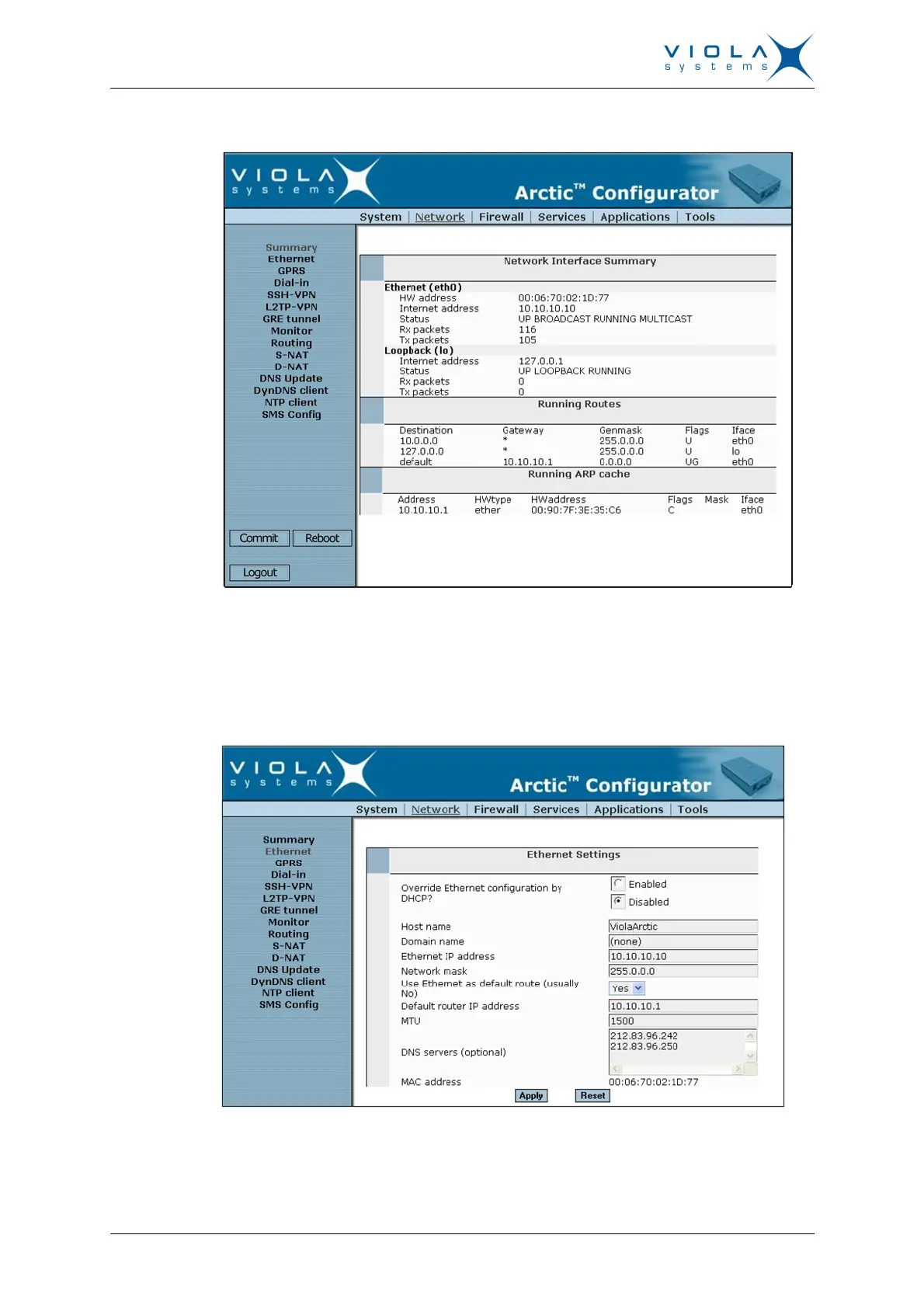 Configuration for the Arctic Ethernet Interface: