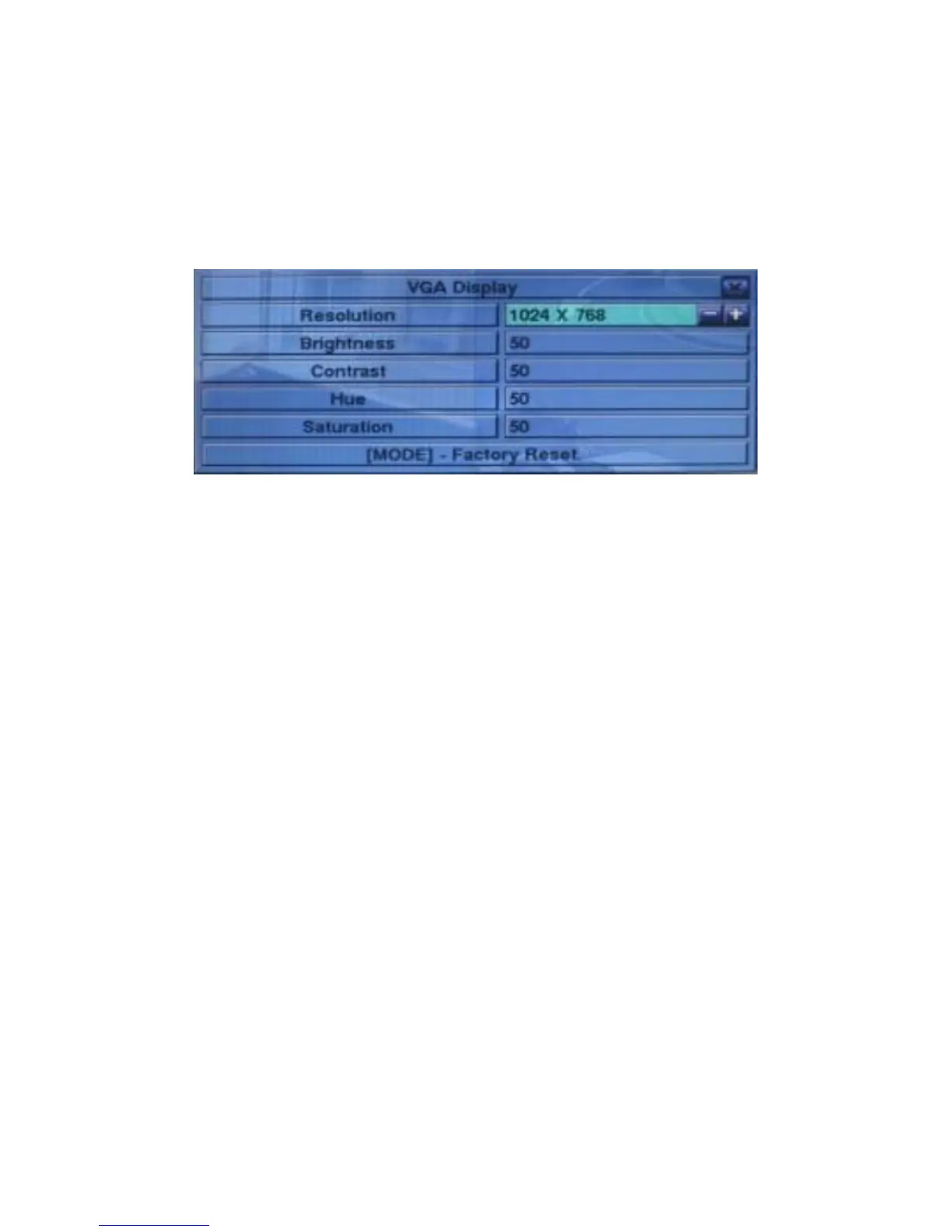 Press this button to restore Brightness, Contrast, Hue, and Saturation to factory