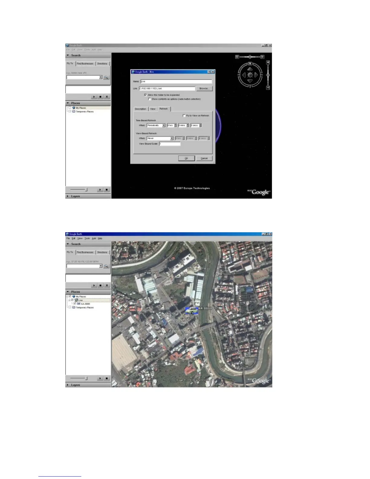 9. Now, the GPS data will be fed from the DVR remote software to Google Earth, and