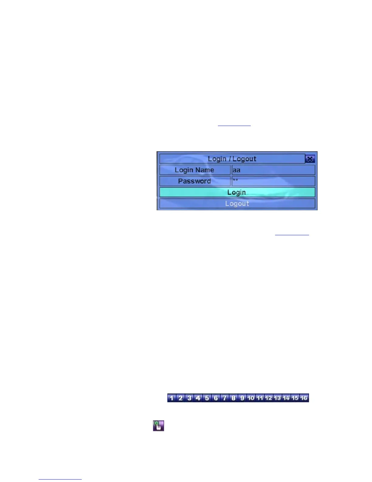 name and password for each user. (Please refer to Section 6.7 for Password Setup.)