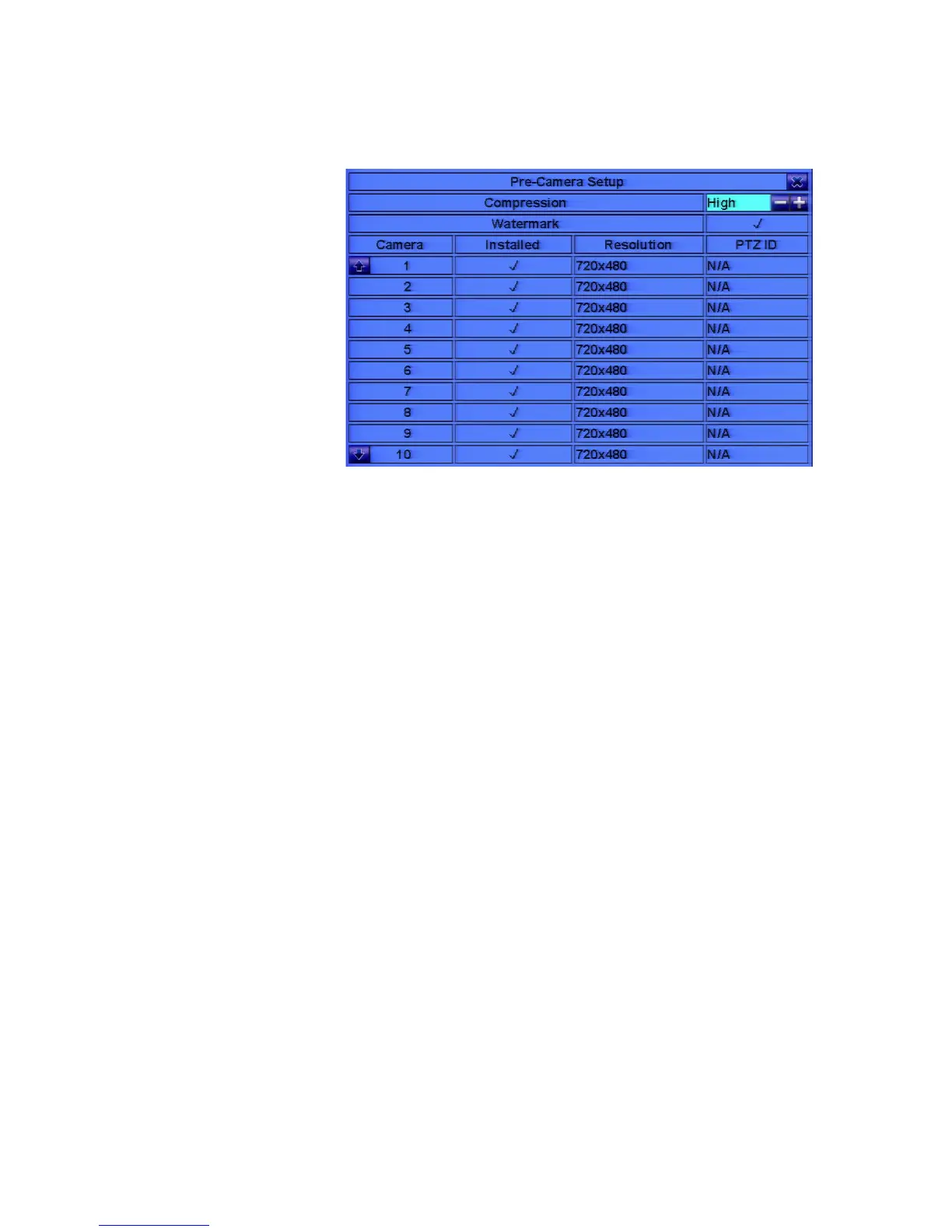 cameras which can be connected to the system. The Pre-Camera Setup allows the