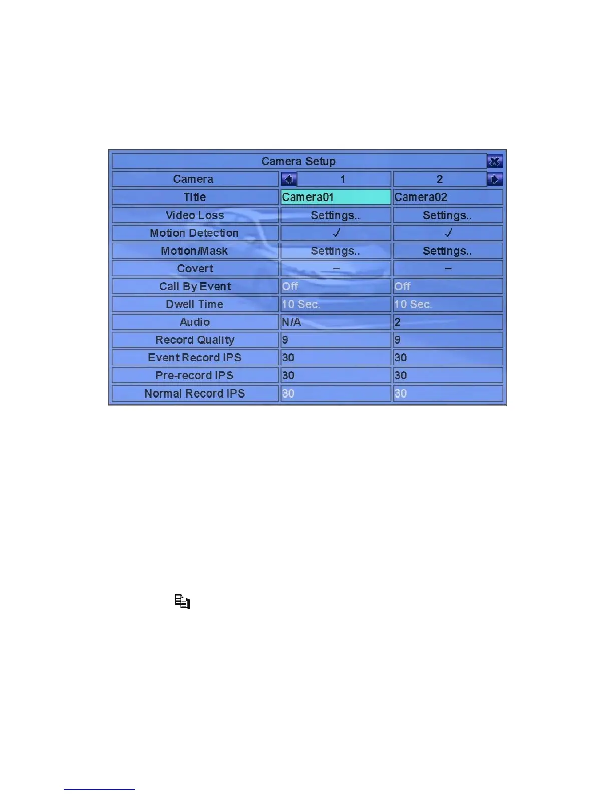 Video Loss settings, Title/Audio - of the focus camera to all the following