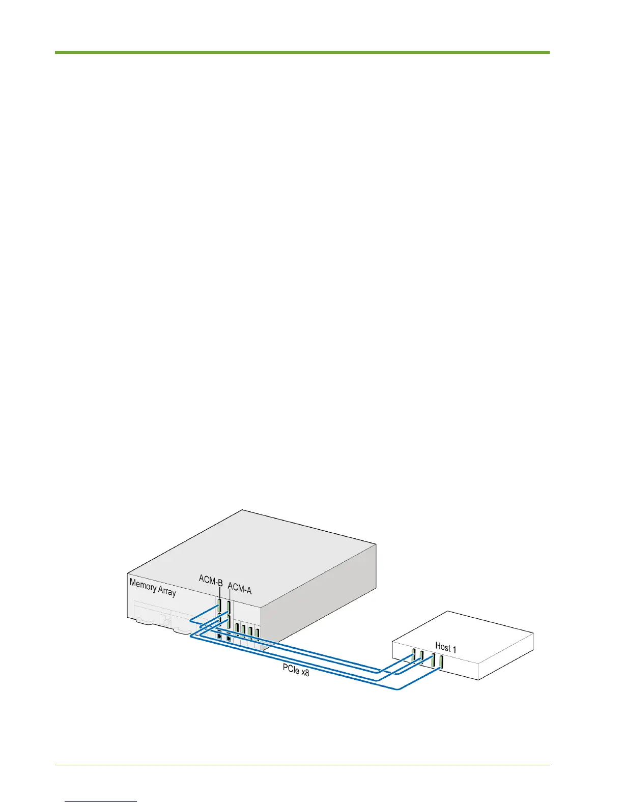 • Single Host: single or dual PCIe x8 connections from the host to the Memory Array.