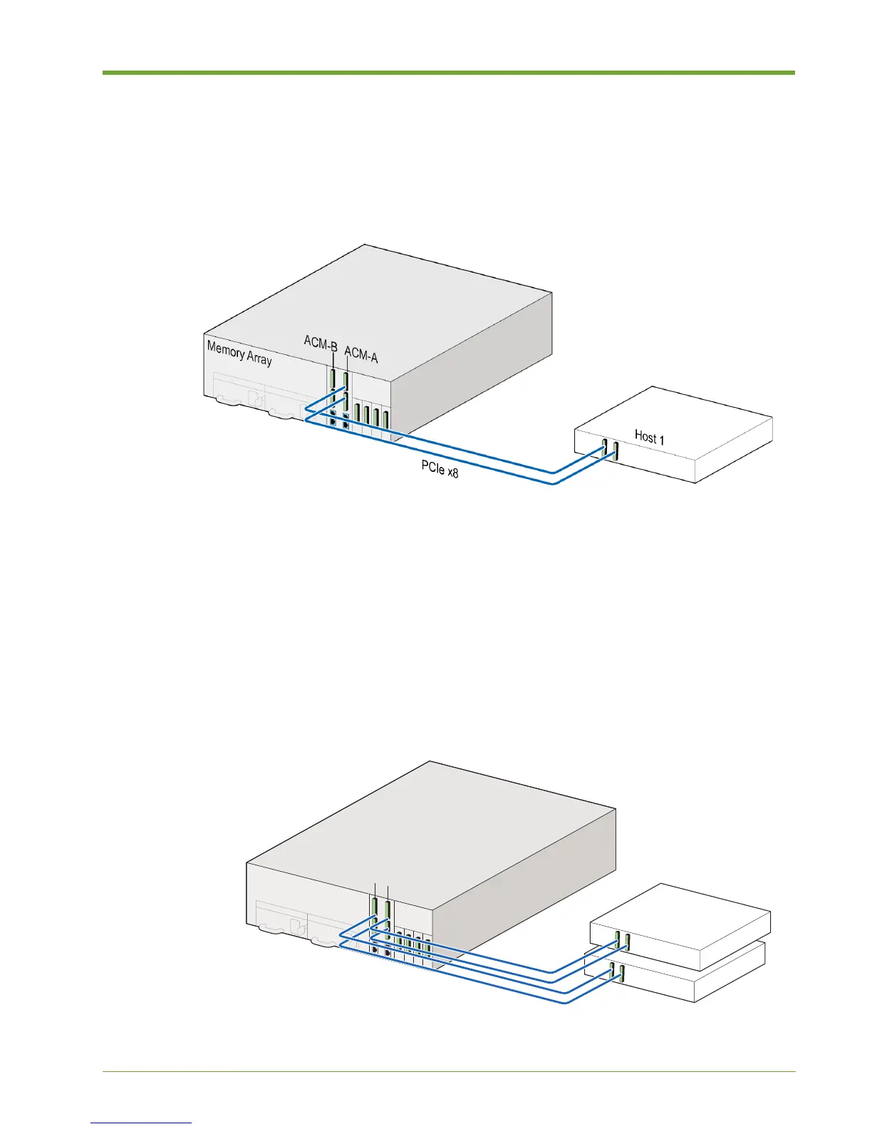 Connecting two PCIe cables from one ACM to the host machine is also supported (as shown in