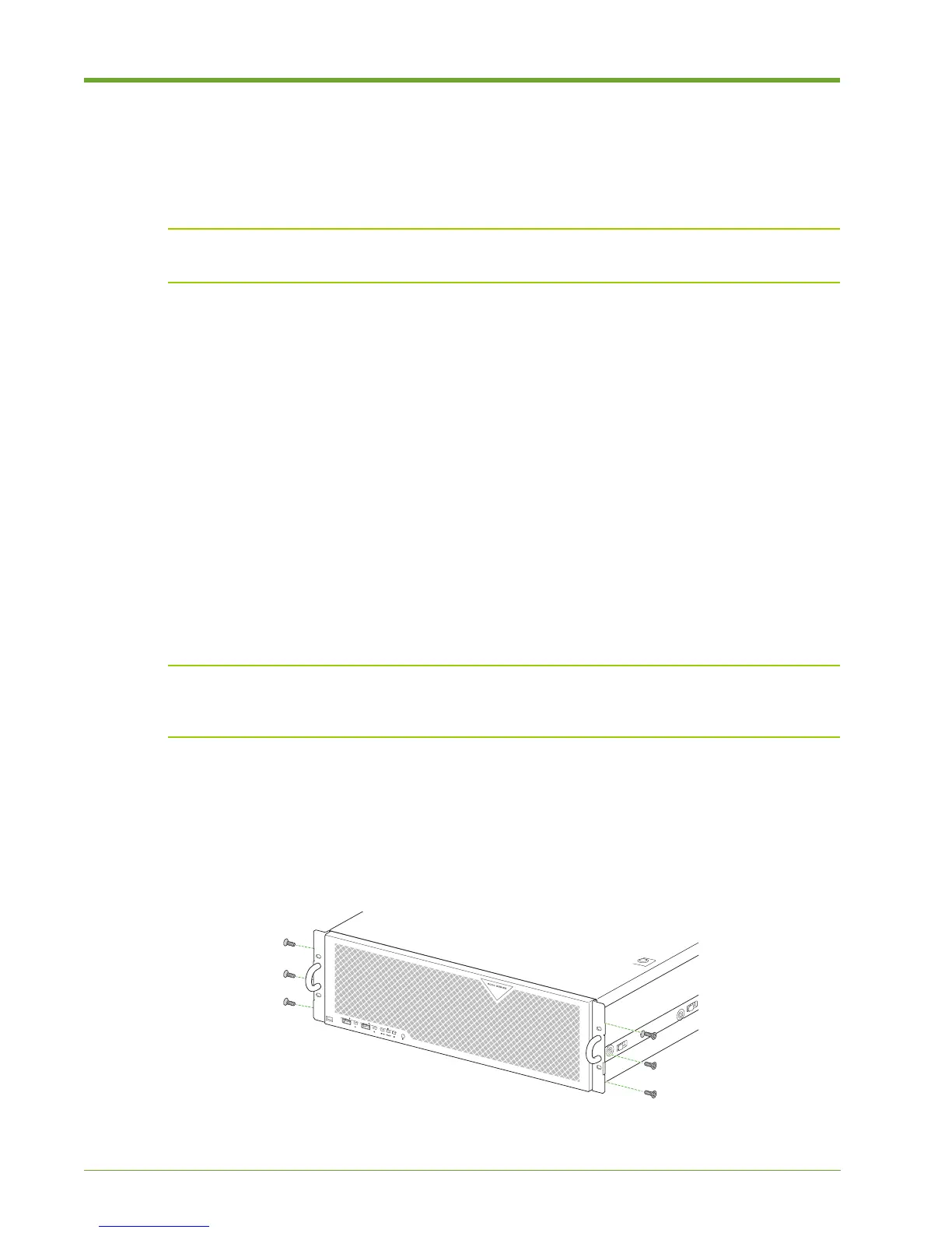 1. Remove the rack ears and six flathead screws from the accessory kit.