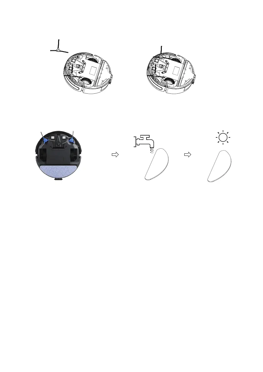 · Turn the main unit over, unplug the side brushes, clean the side brushes and put them back in.
