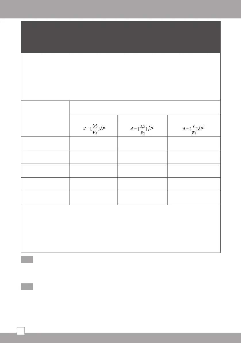 d in metres (m) can be estimated using the equation applicable to the frequency of the transmitter, where