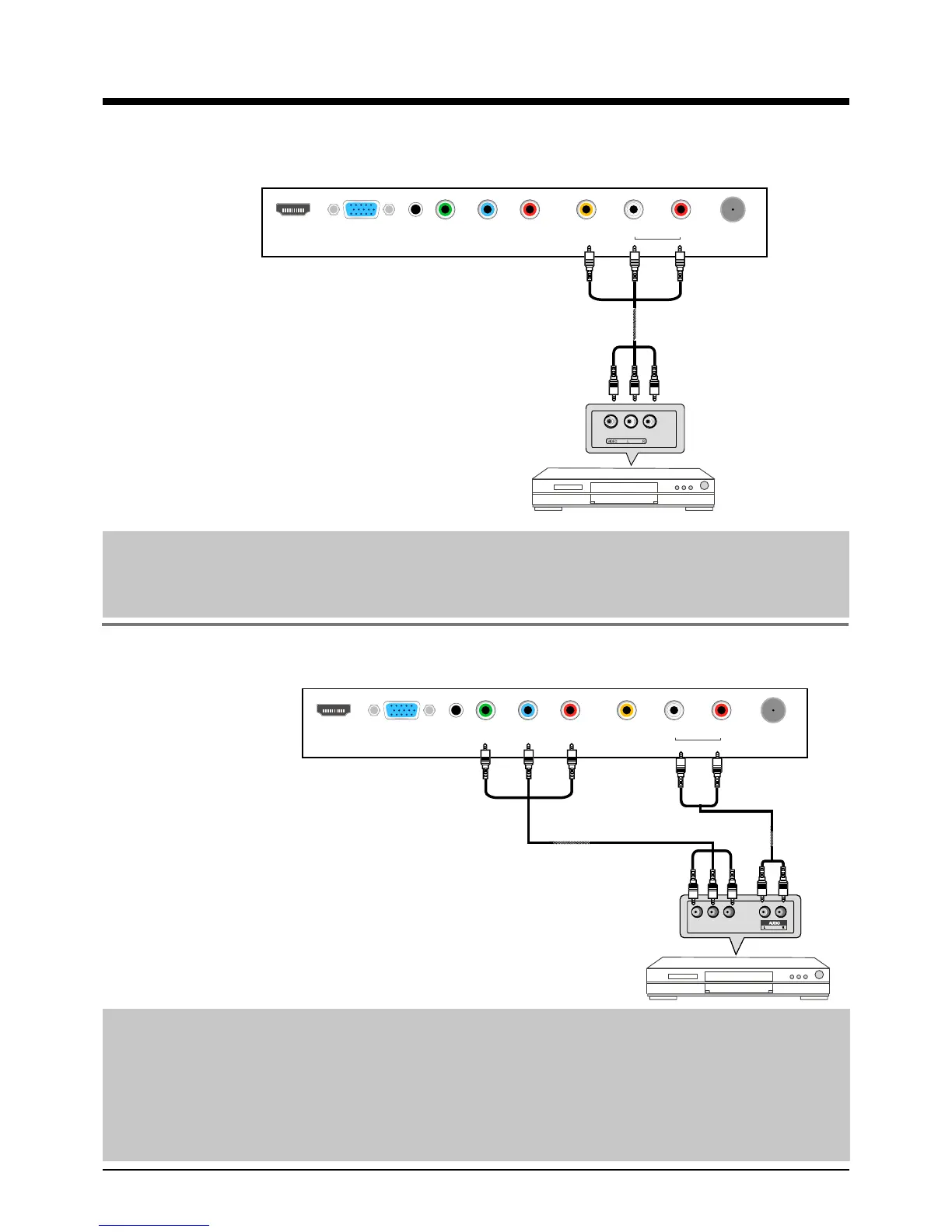 - Connect the audio output jacks on the DVD or VCR to the audio input jacks on the set with an