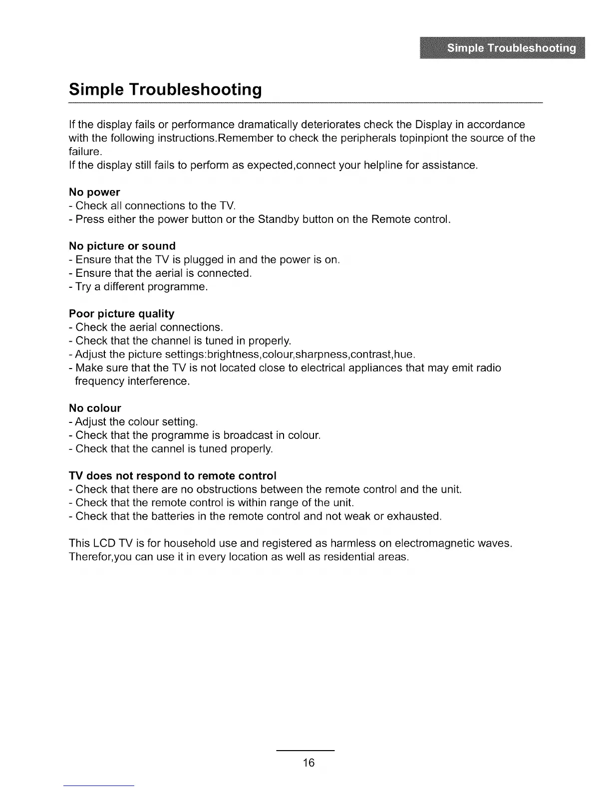This LCD TV is for household use and registered as harmless on electromagnetic waves.