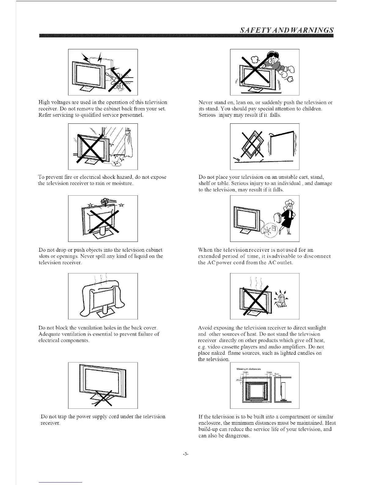 Do not drop or push o{1iects into the television cabinet