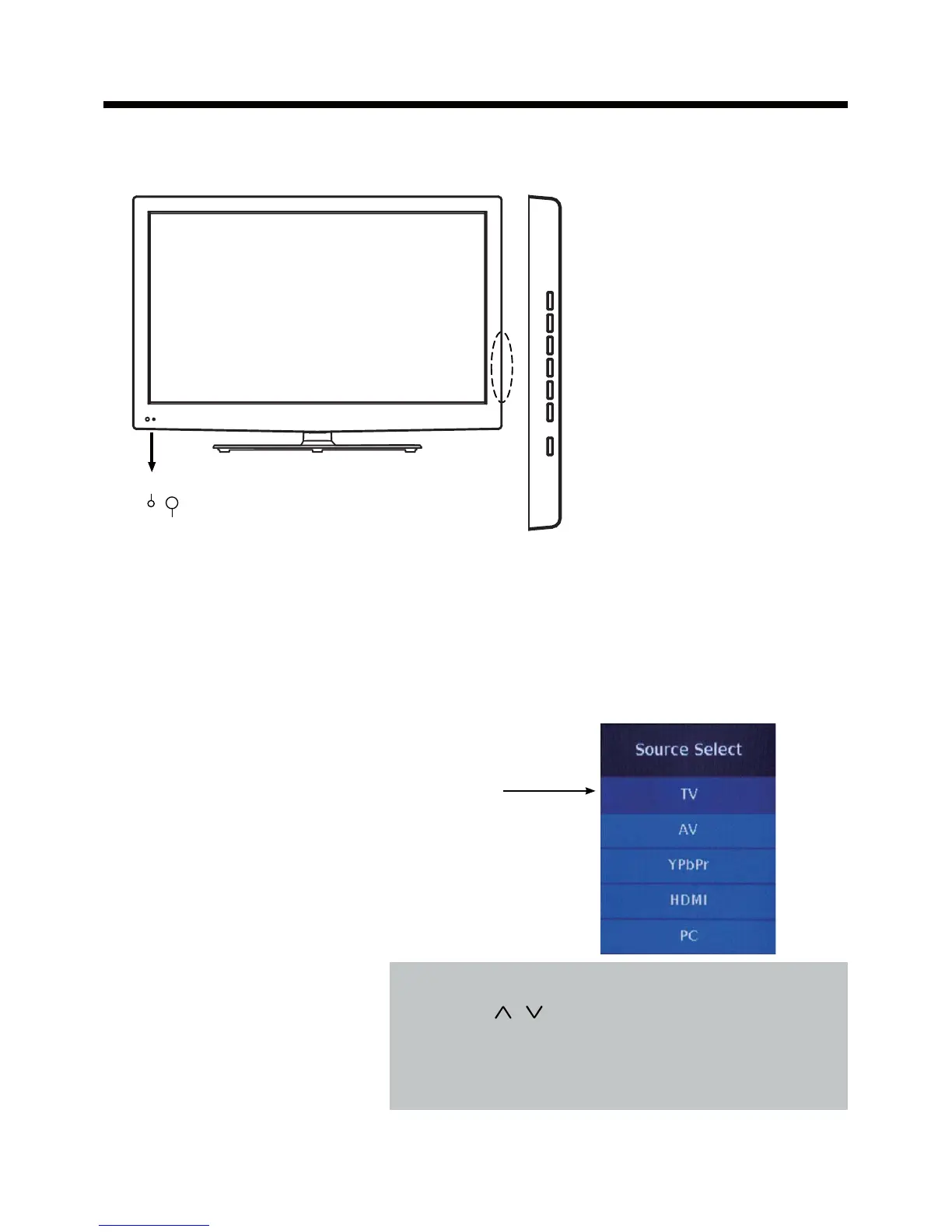 display the input source menu, and use CH+/- button on
