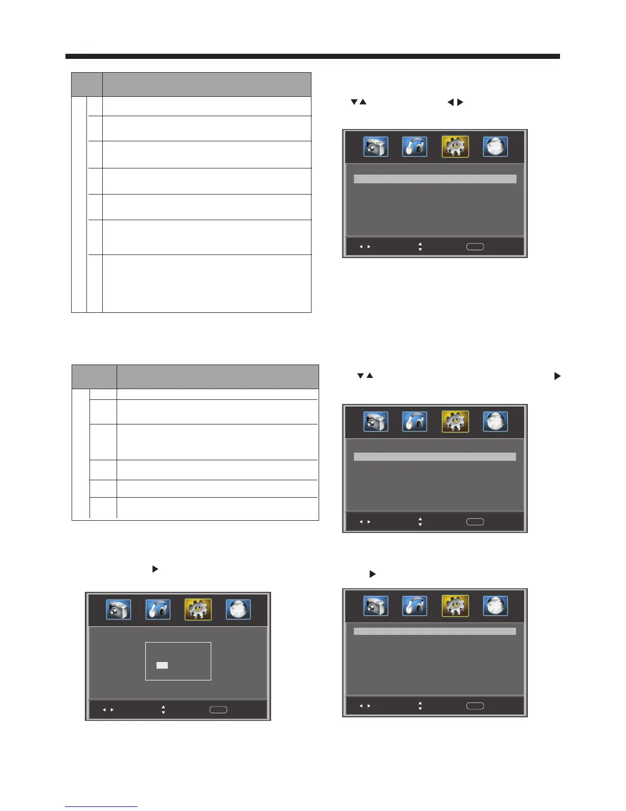 Press to select, and press to adjust. Press MENU