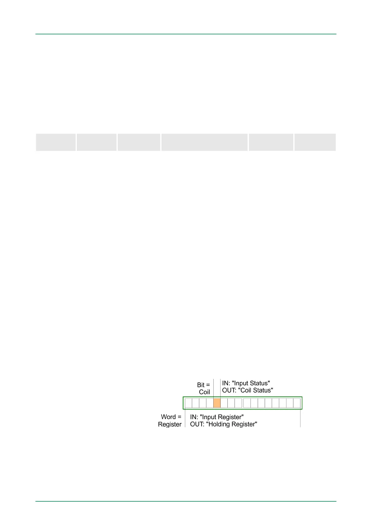 n Modbus differentiates between bit and word access; bits = "Coils"