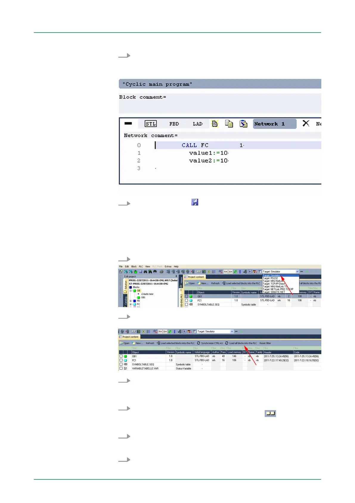 Test the PLC program in the Simulator