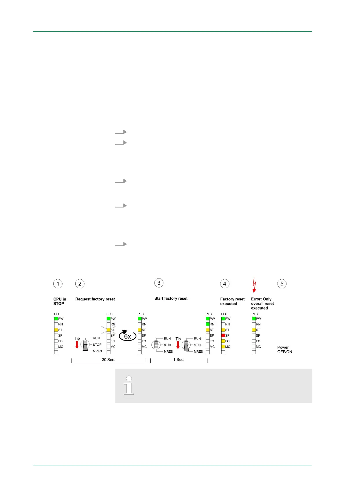 ST, SF, FC and MC get ON. If not, the factory reset has failed