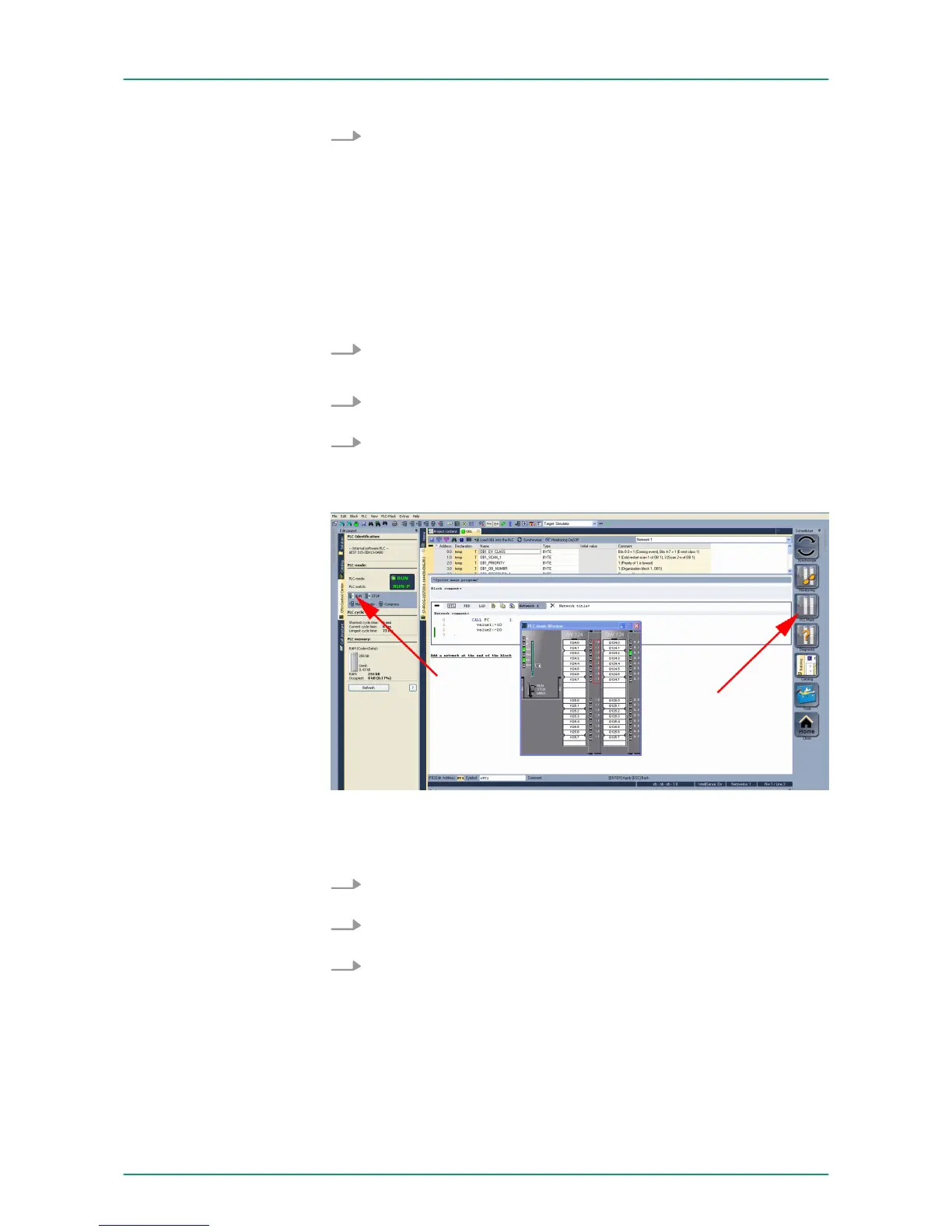 Example project engineering > Transfer PLC program to CPU and its execution