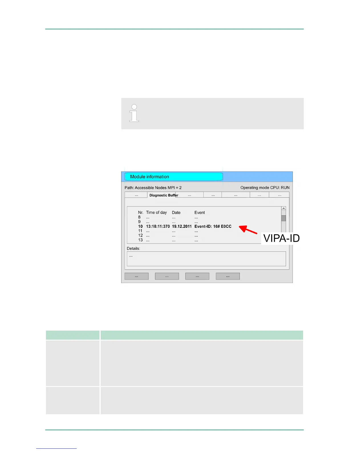 You may store a max. of 100 diagnostic entries in the CPU. The fol-