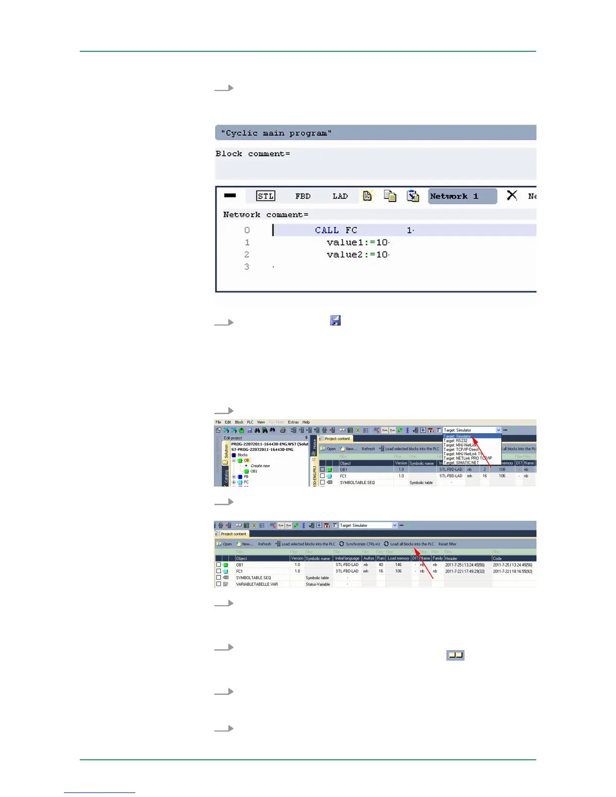 Test the PLC program in the Simulator