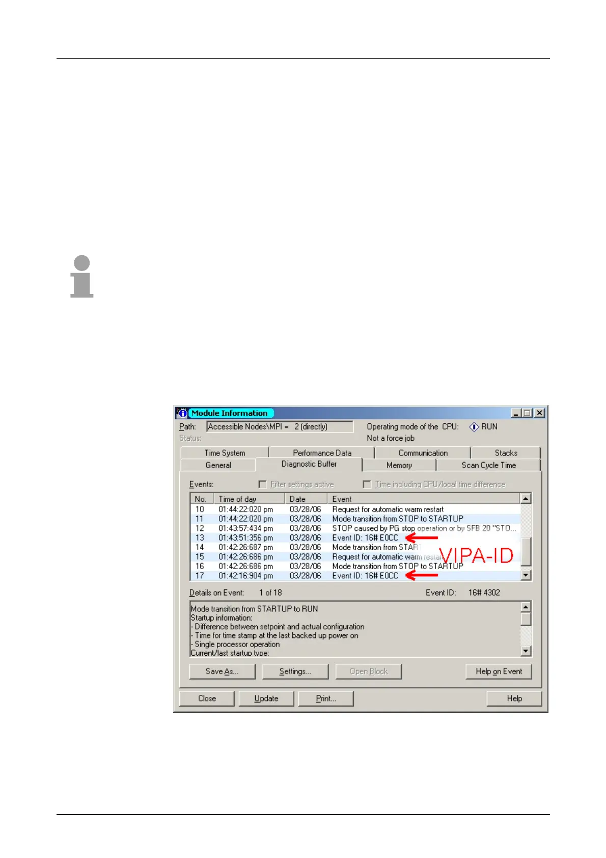 Manager. Besides of the standard entries in the diagnostic buffer, the VIPA