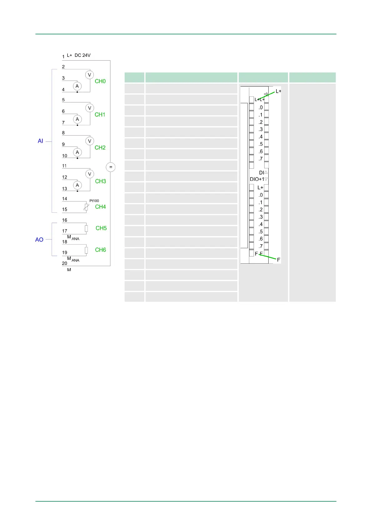 CPU 314-6CF03: Analog part pin assignment and status indi-