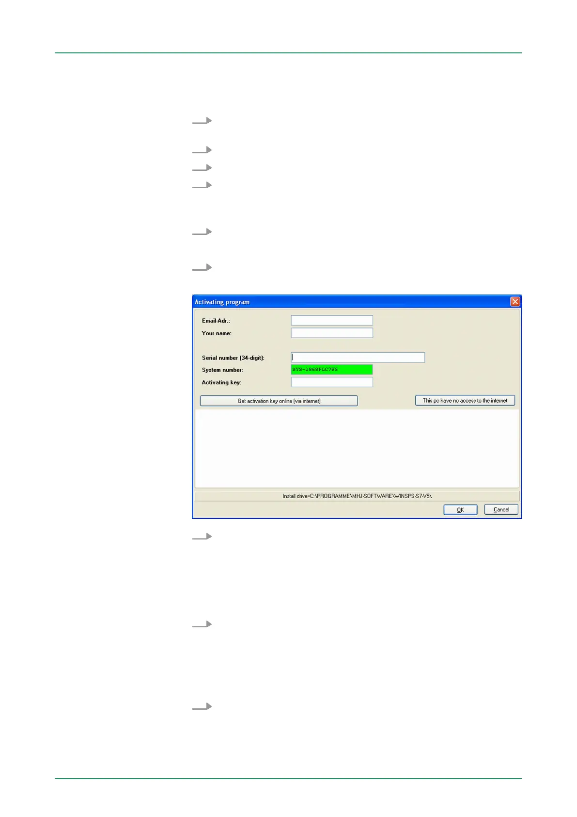 The installation and the registration of WinPLC7 has the following