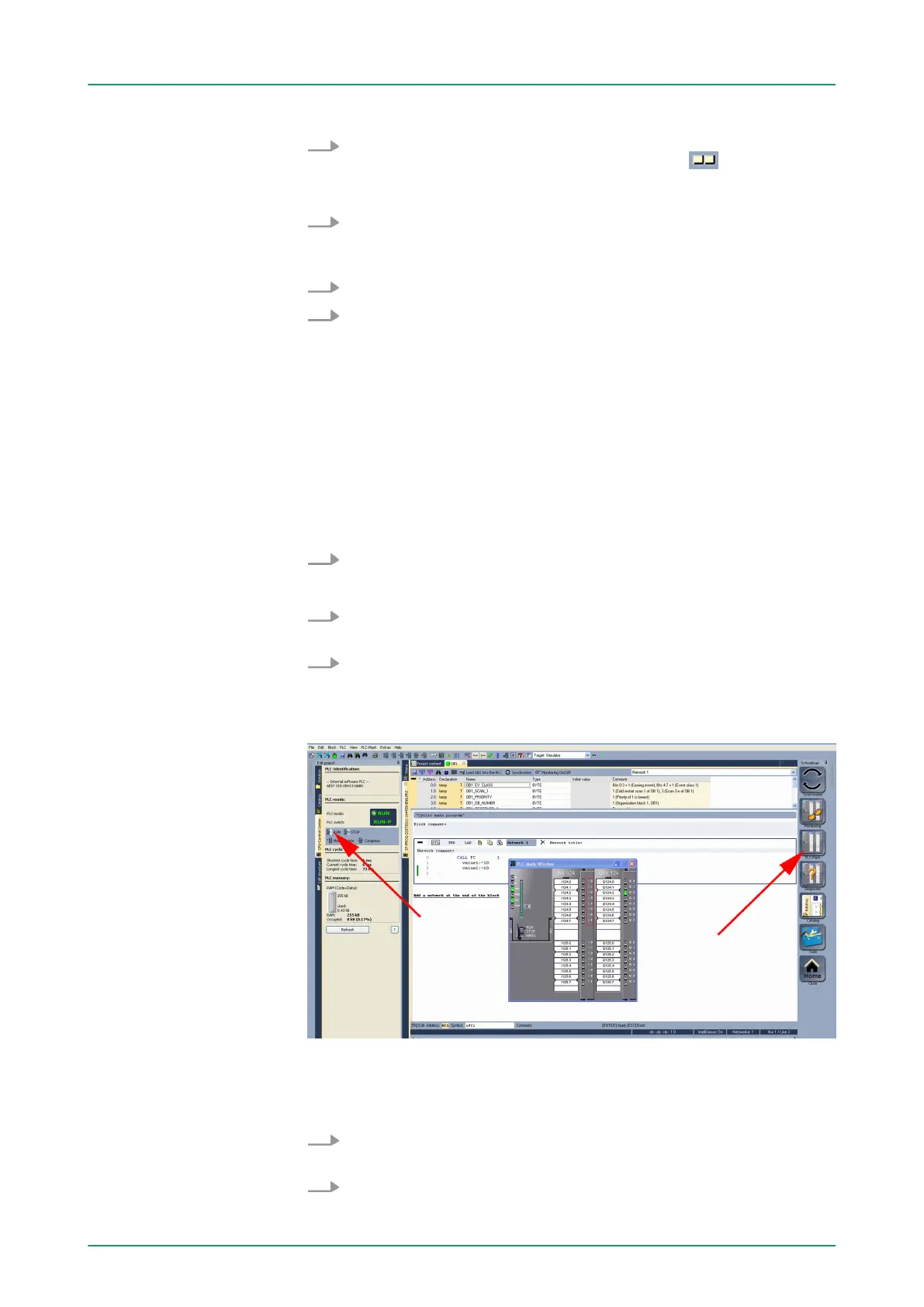 Example project engineering > Transfer PLC program to CPU and its execution