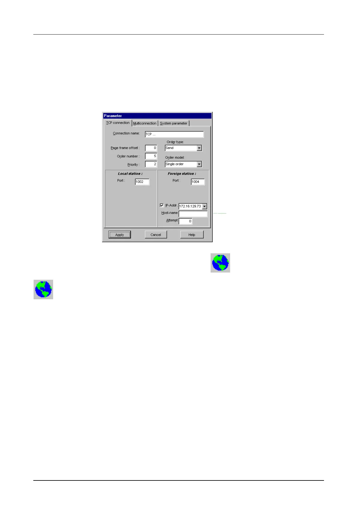 You may configure TCP/IP-connections by selecting the symbol of the