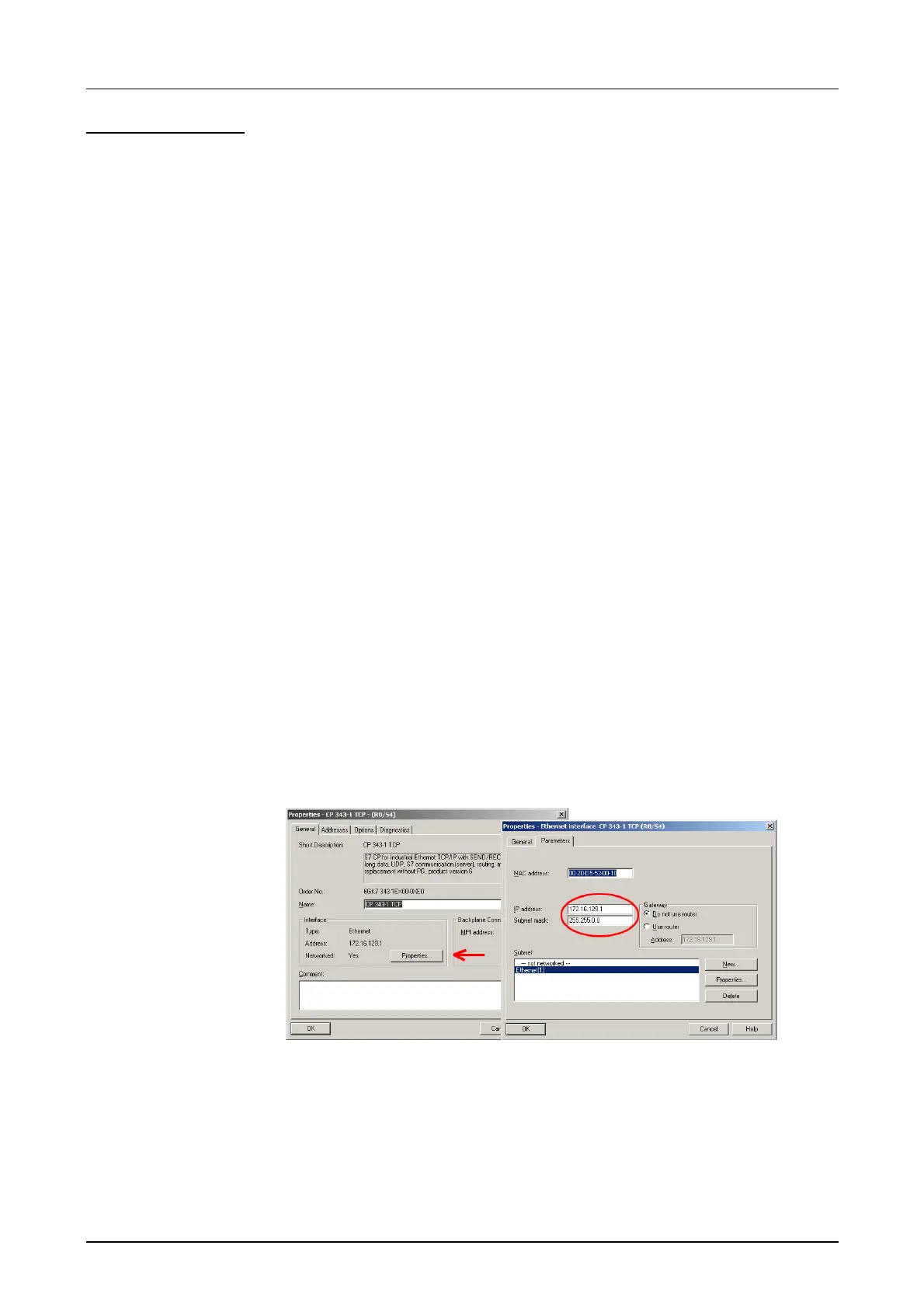 • Via a double click on the CP 343-1 TCP you open the properties window