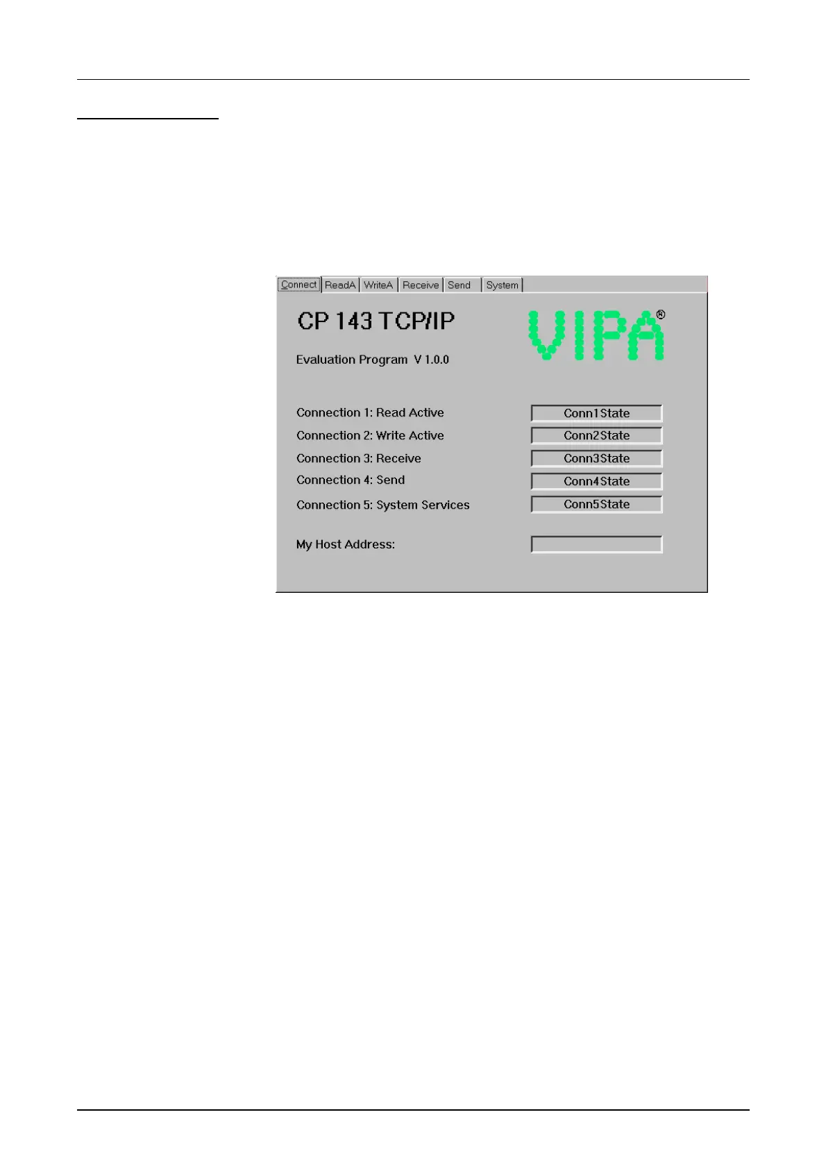 Start TCPTEST.EXE. The test program starts with the following window: