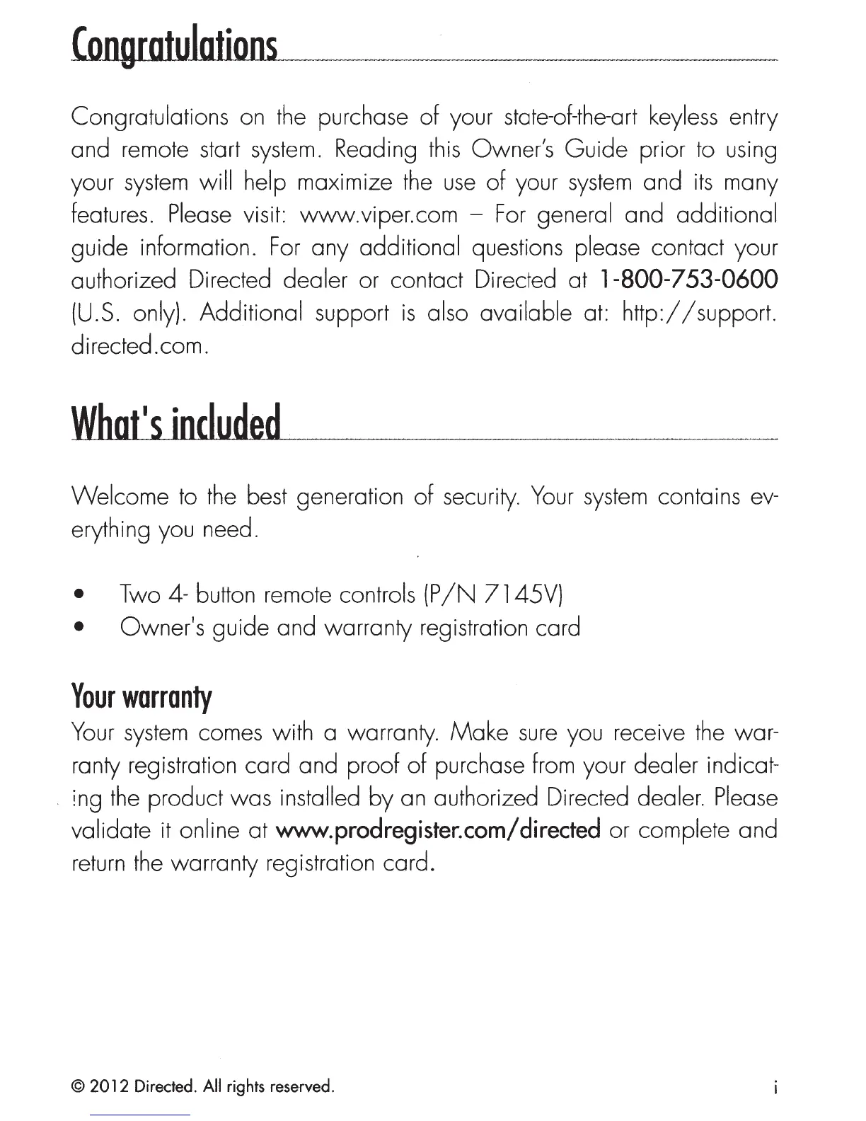 Congratulations on the purchase of your state-of-the-art keyless entry