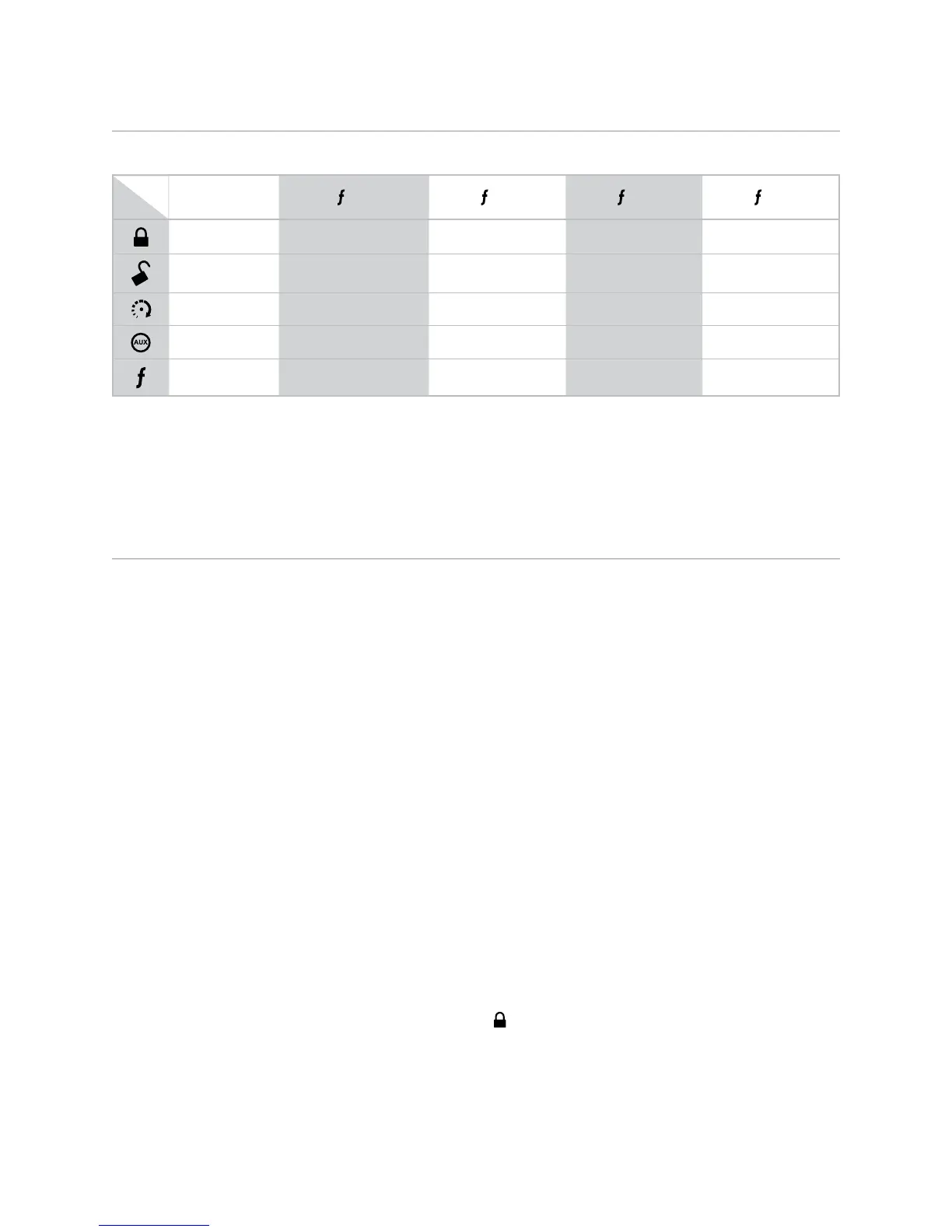 Note: See Owner’s Guide of your specific model for exact functionality. The above table reflects the LCD