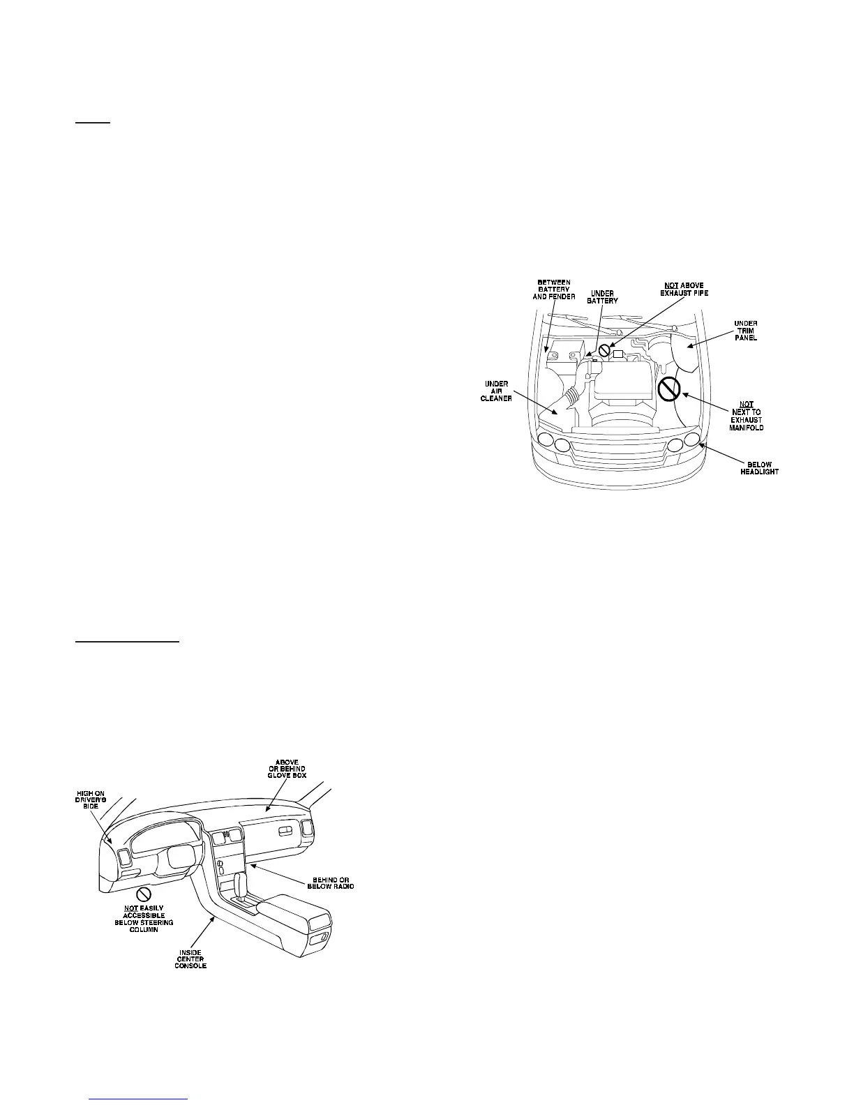 • Mount it where a thief cannot easily disconnect it, whether the hood is open or shut. Both the siren and
