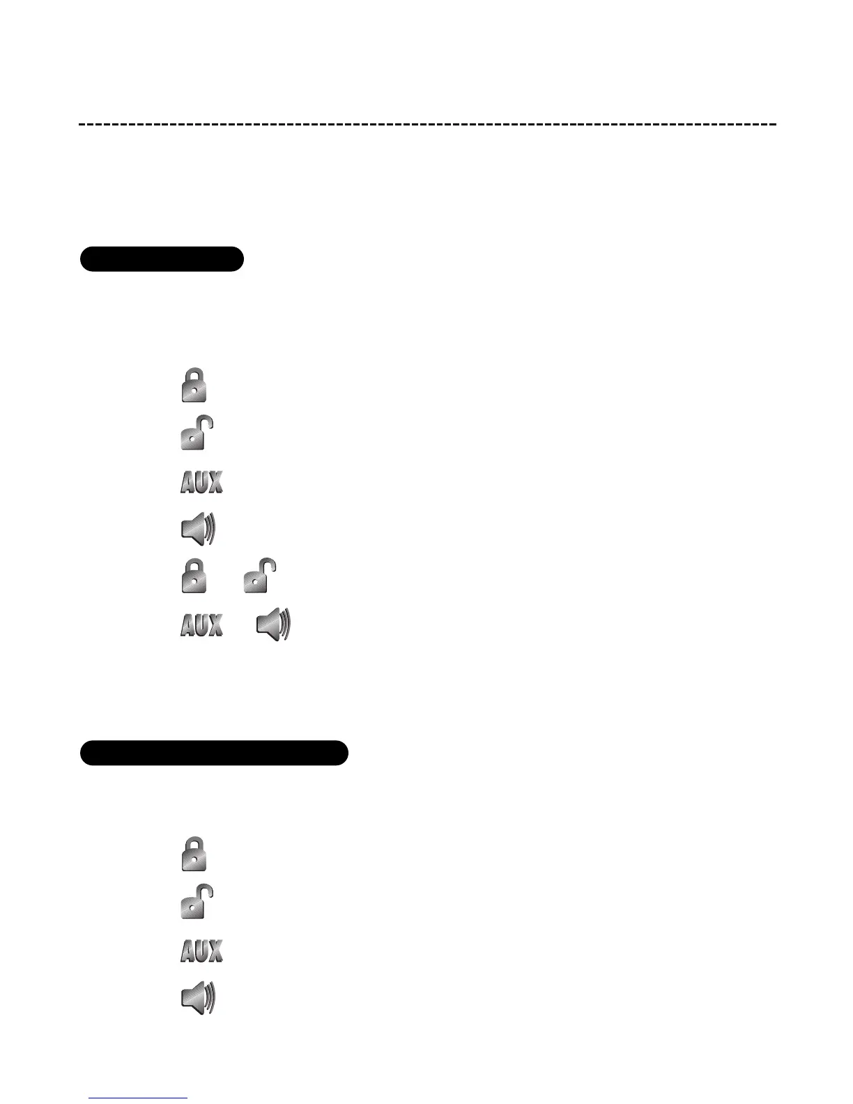 When programmed for single button arm/disarm configuration, the transmitter buttons are assigned to the fol-