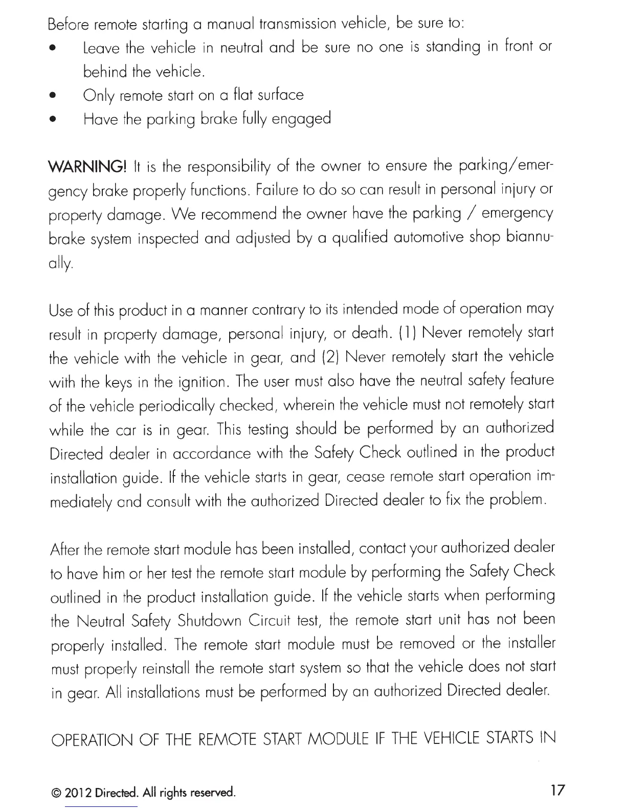 Before remote starting a manual transmission