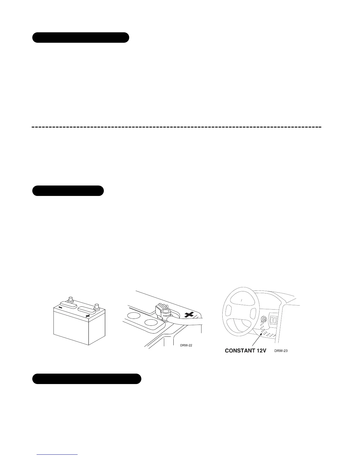 We recommend two possible sources for 12V constant: the (+) terminal of the battery, or the constant supply to
