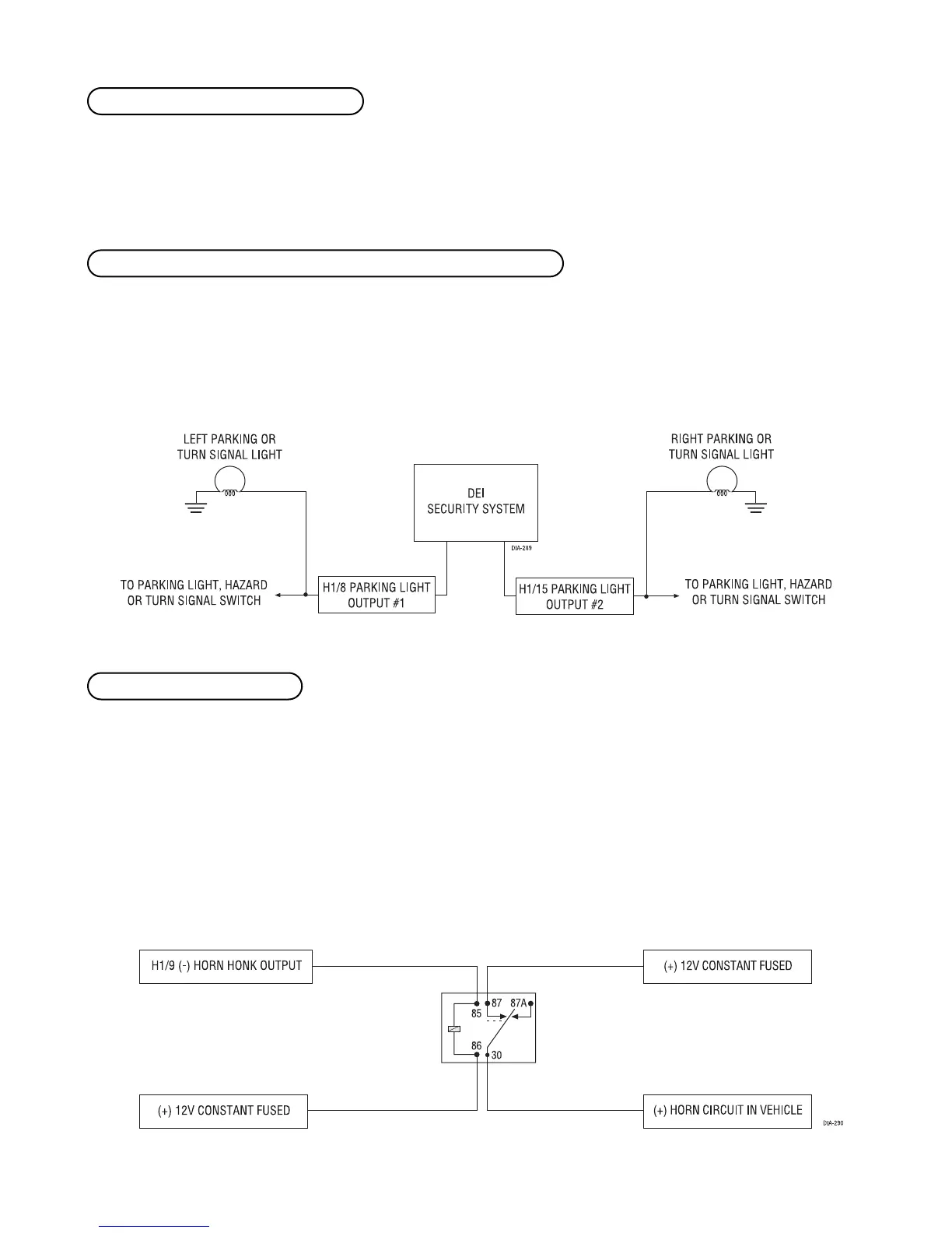 This wire supplies a (-) 200 mA output that can be used to honk the vehicle horn. This wire outputs pulses when