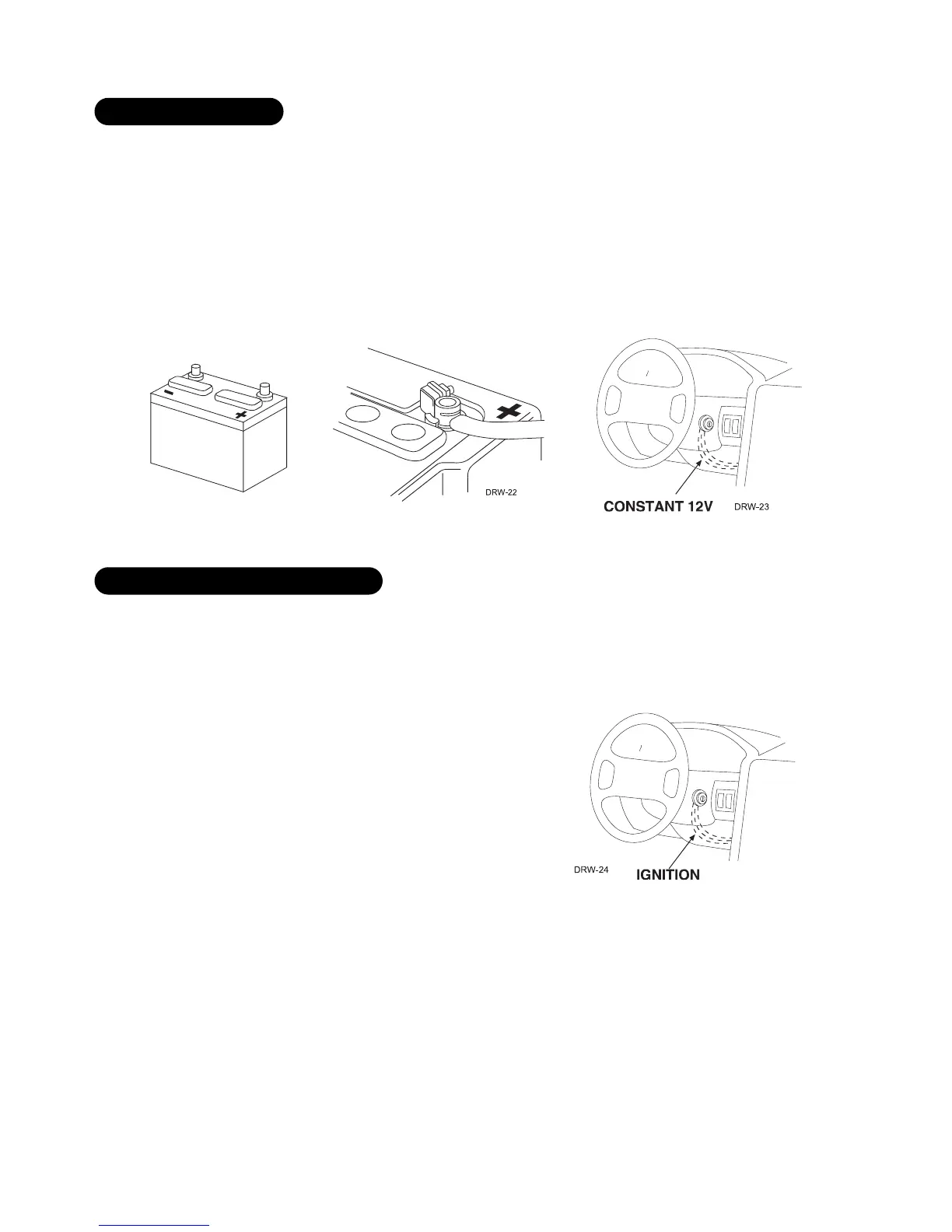 We recommend two possible sources for 12V constant: the (+) terminal of the battery, or the constant supply to the