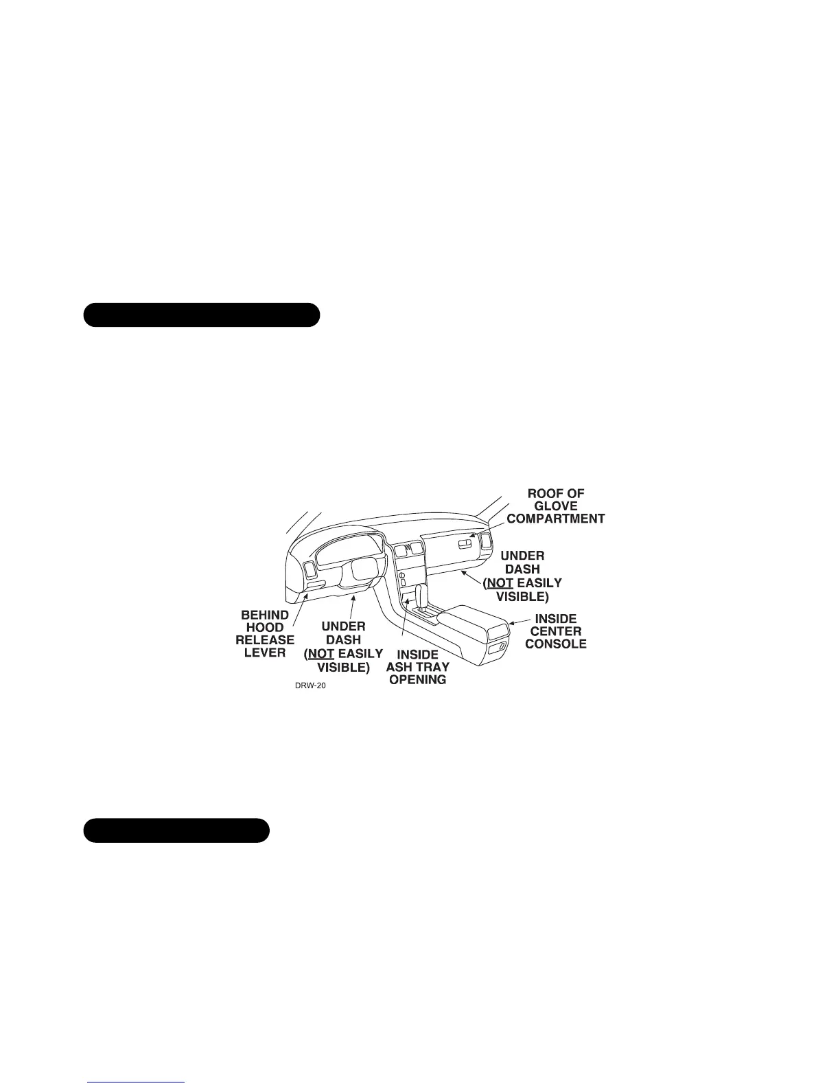 hidden. It should be placed so passengers or stored items (such as in a glove box or center console) cannot acci-