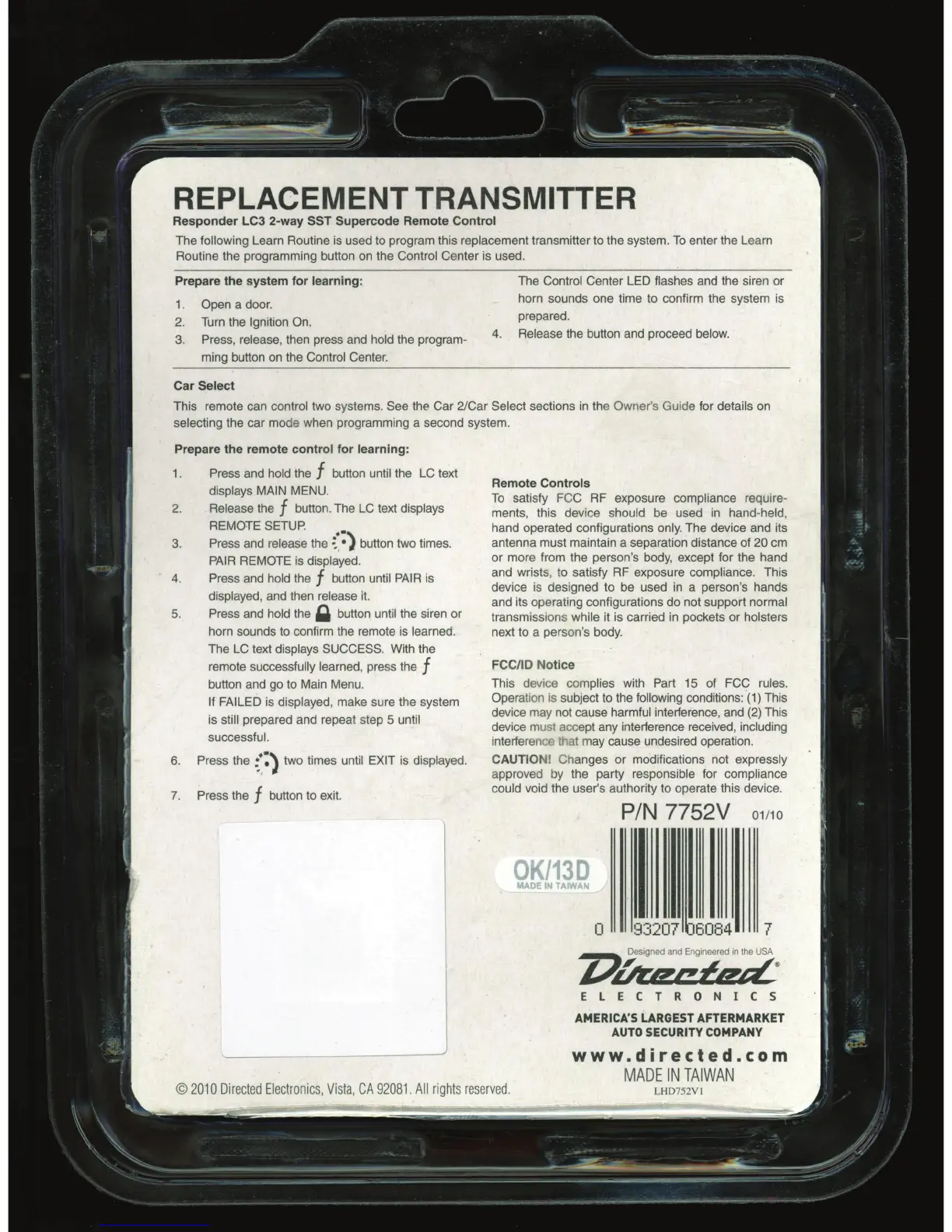 This remote can control two systems. See the Car 2/Car Select sections in the Owner's Guide for details on